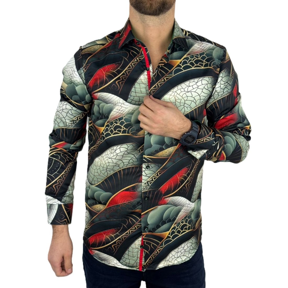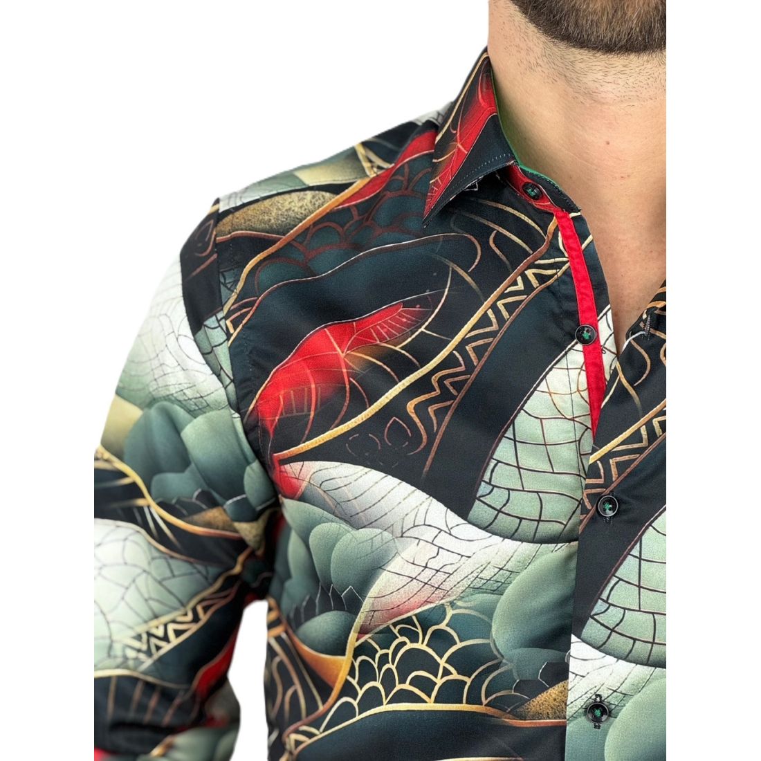 GUISEPPE LUIGI Koszula męska GL64 kolorowa, zielona, złota, wąż