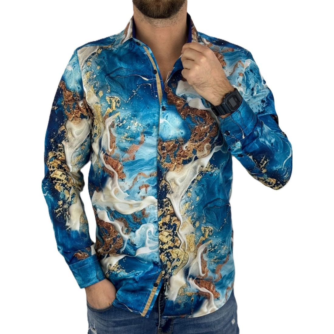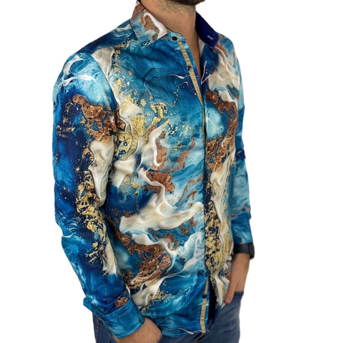 GUISEPPE LUIGI Koszula męska GL75 niebieska, woda, plaża, morze, kolorowa, wakacje