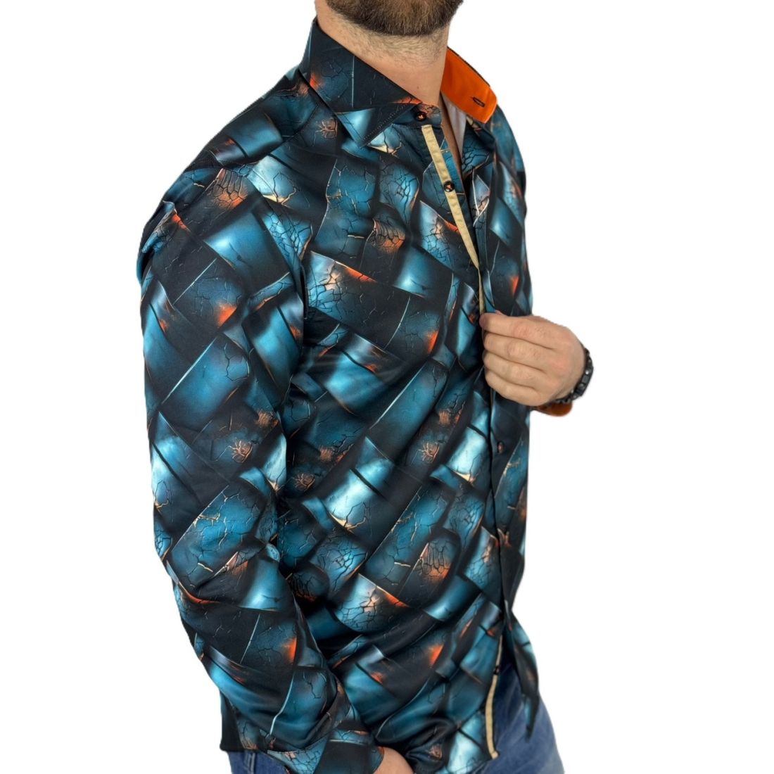 GUISEPPE LUIGI Koszula męska GL76 niebieska cegła 3D , kolorowa