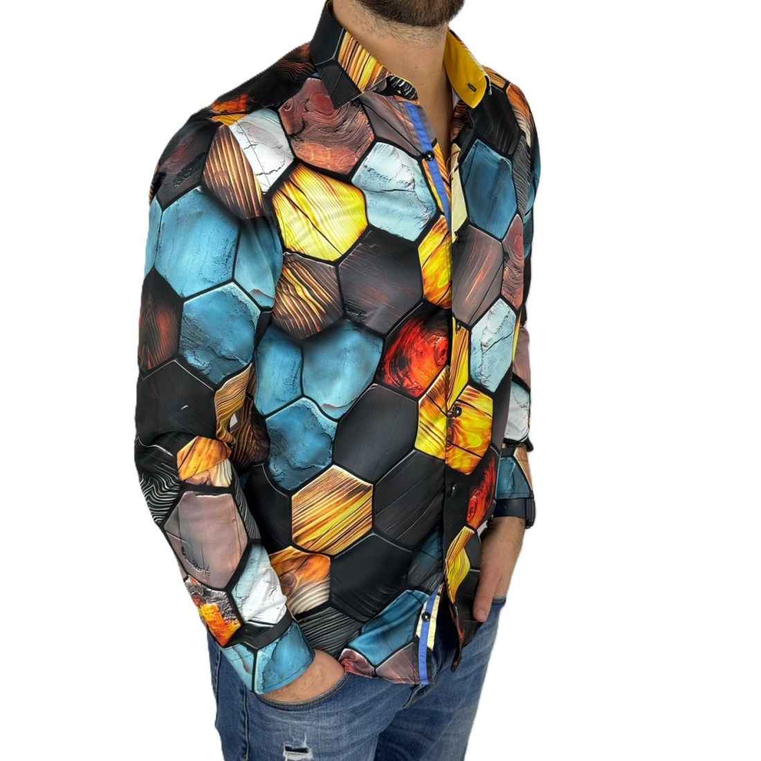 GUISEPPE LUIGI Koszula męska GL77 kolorowa, plaster miodu 3D