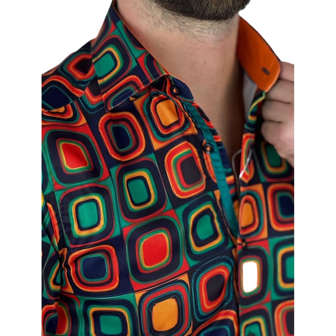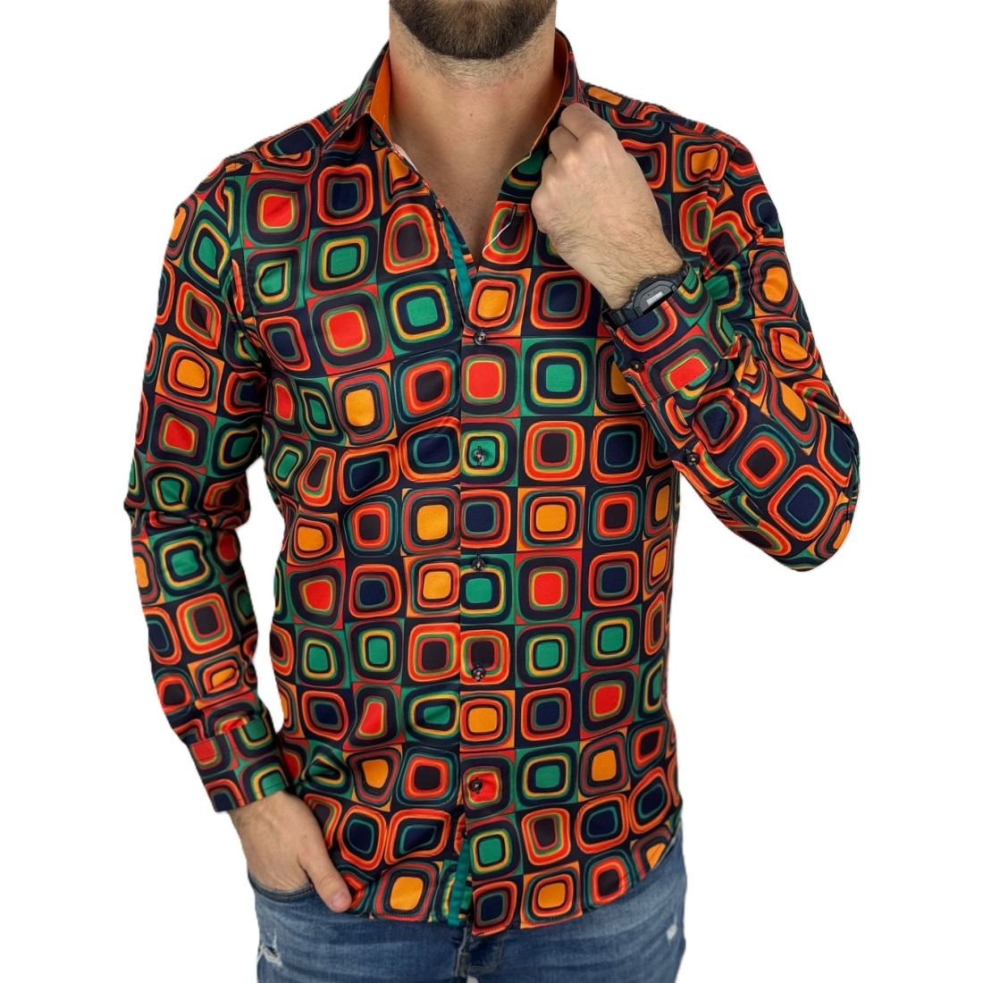 GUISEPPE LUIGI Koszula męska GL80 kolorowa, kwadraty, retro