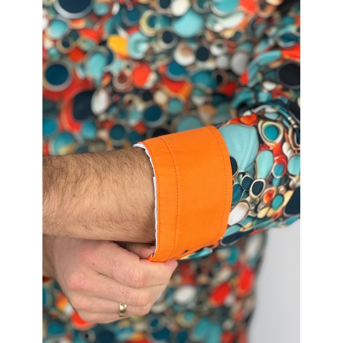 GUISEPPE LUIGI Koszula męska GL83 kolorowa, kółka, zielona, pomarańczowa