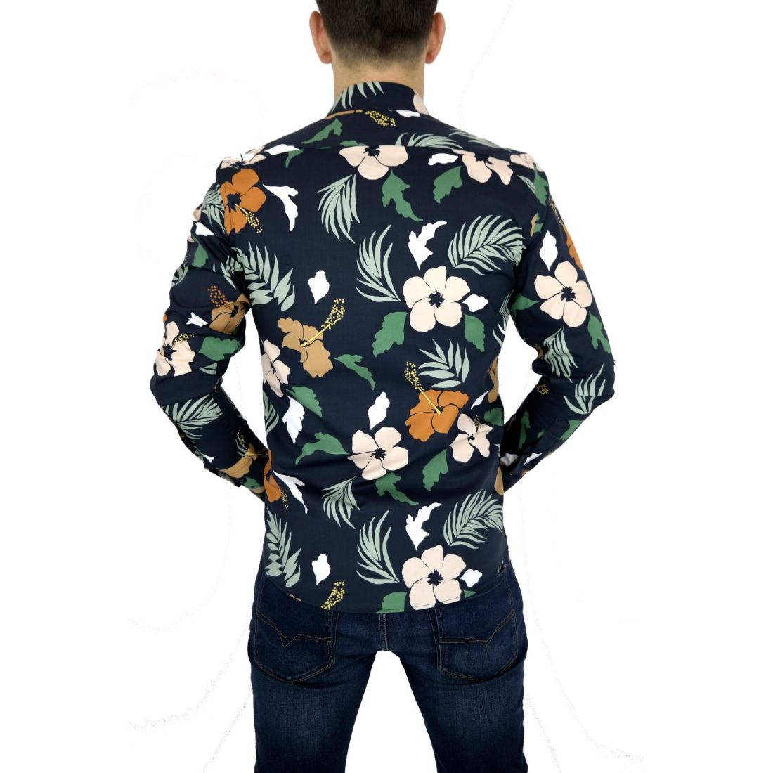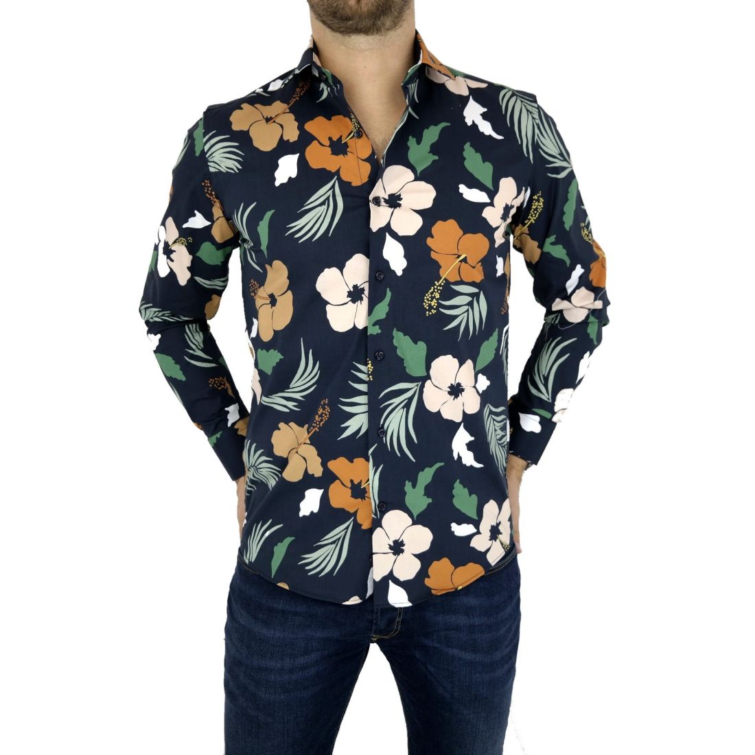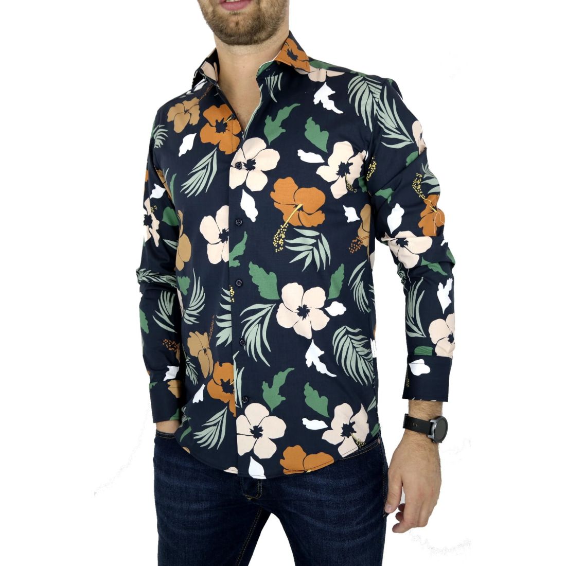 GUISEPPE LUIGI Koszula męska GL39 biała z efektownym kolorowym nadrukiem, twarz kobiety