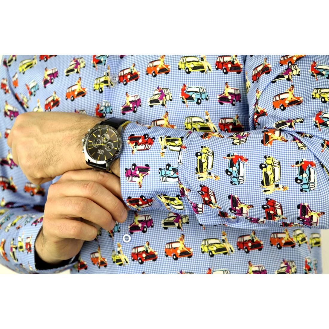 GUISEPPE LUIGI Koszula męska GL38 biała z efektownym kolorowym nadrukiem muzycznym,...
