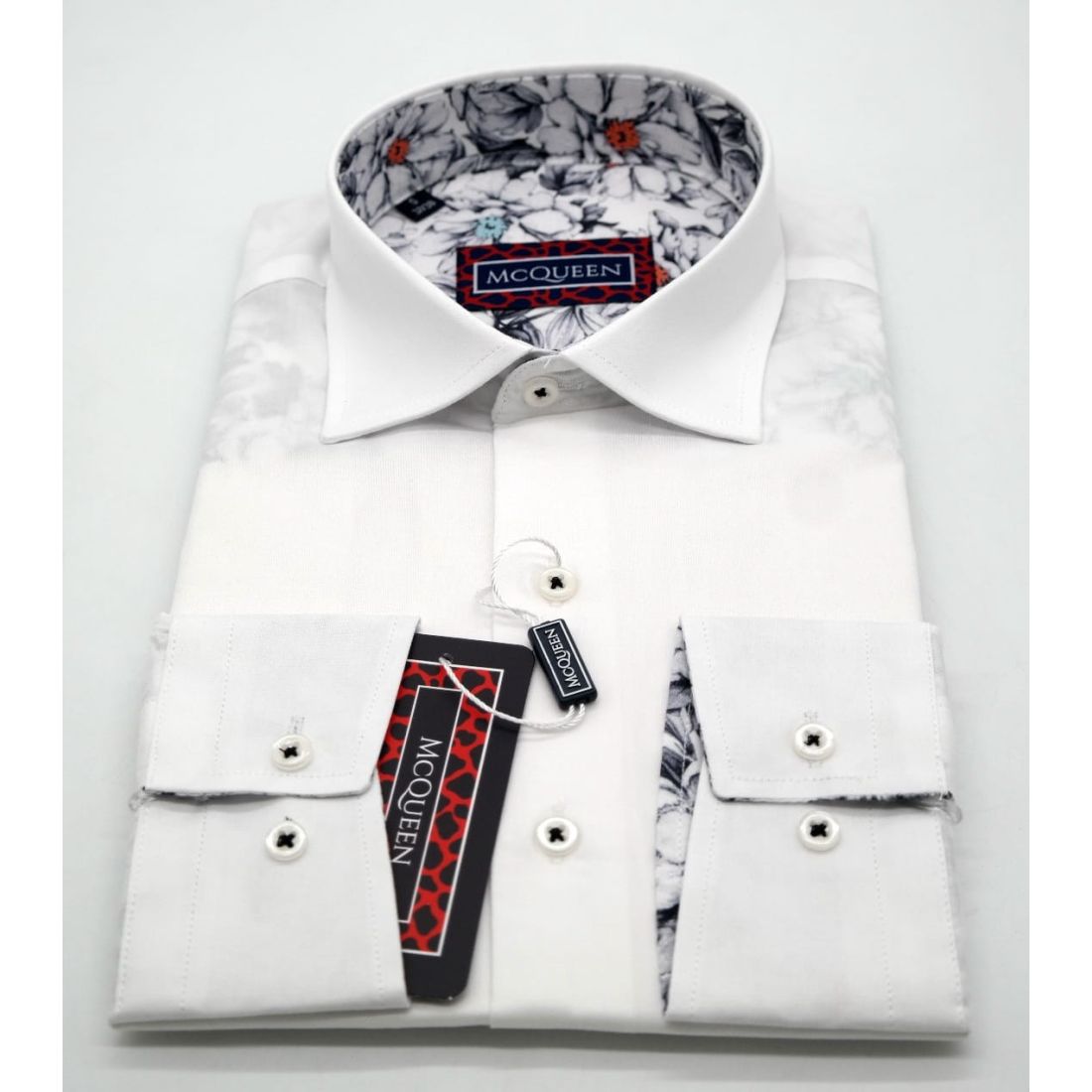 MCQUEEN Koszula męska biała MC061 wykończenie szare | Sklep GriShop.eu | Koszule