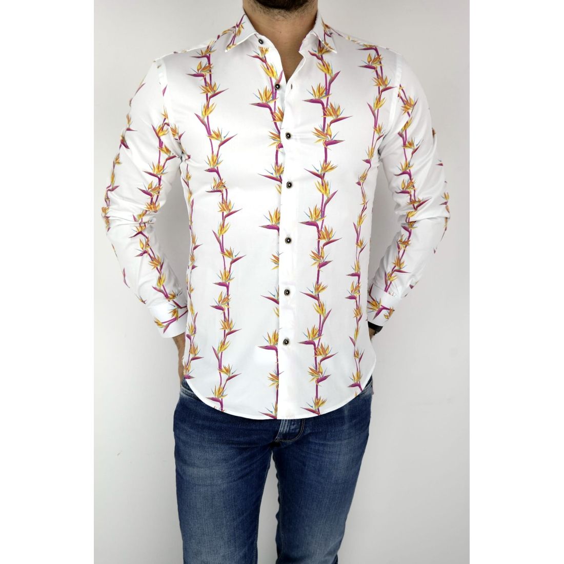 MCQUEEN Koszula męska biała w kwiaty MC021