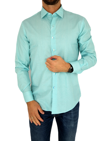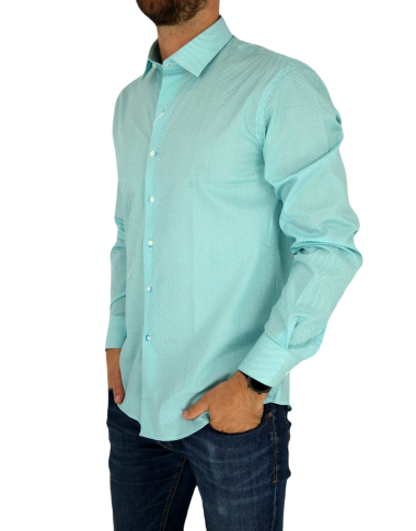 - MCQUEEN Koszula męska MC069 turkusowa, drobna kratka