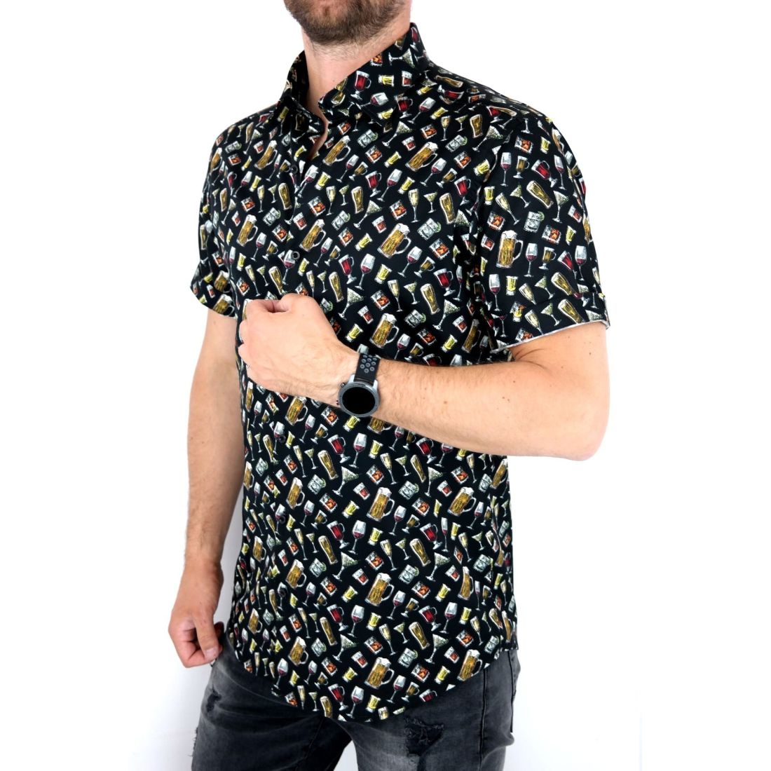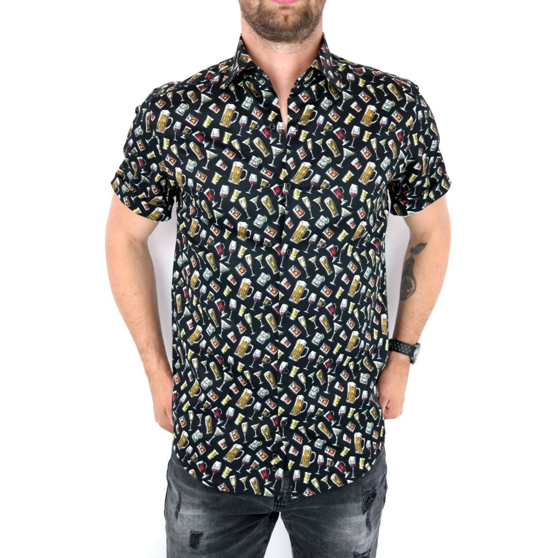 TANCREDO Koszula męska krótki rękaw TN19 czarna, piwo drinki | Sklep GriShop.eu | Koszule