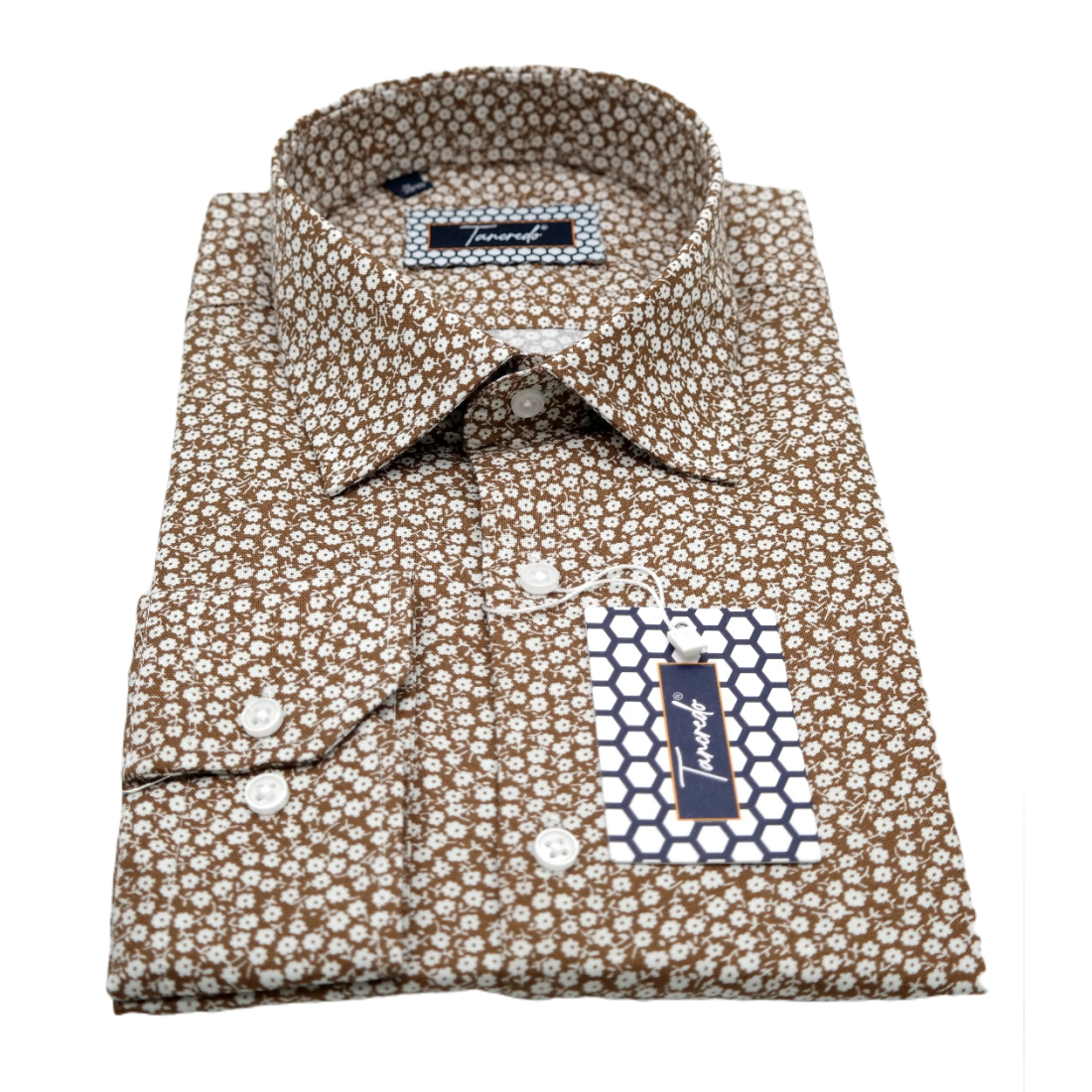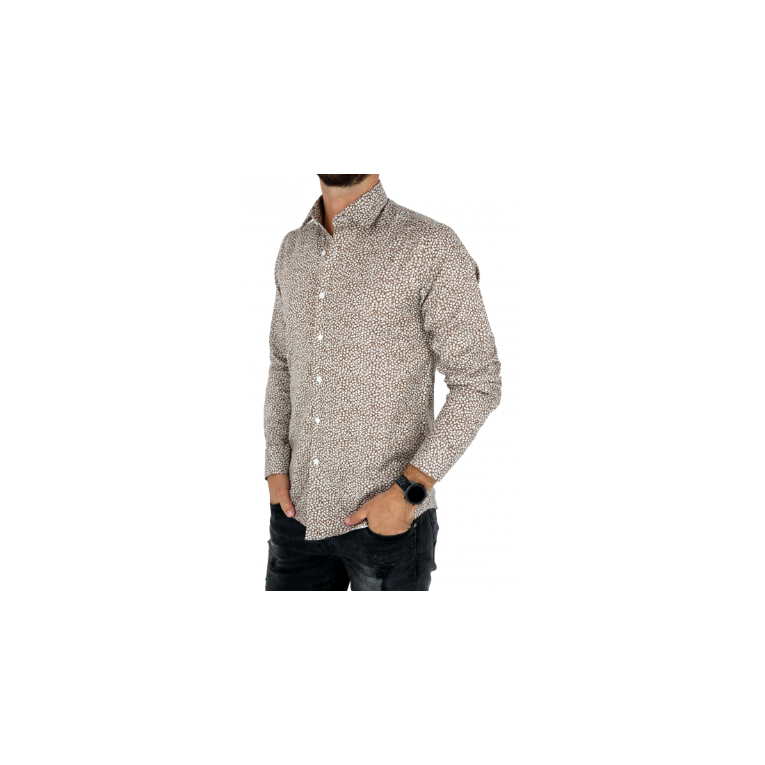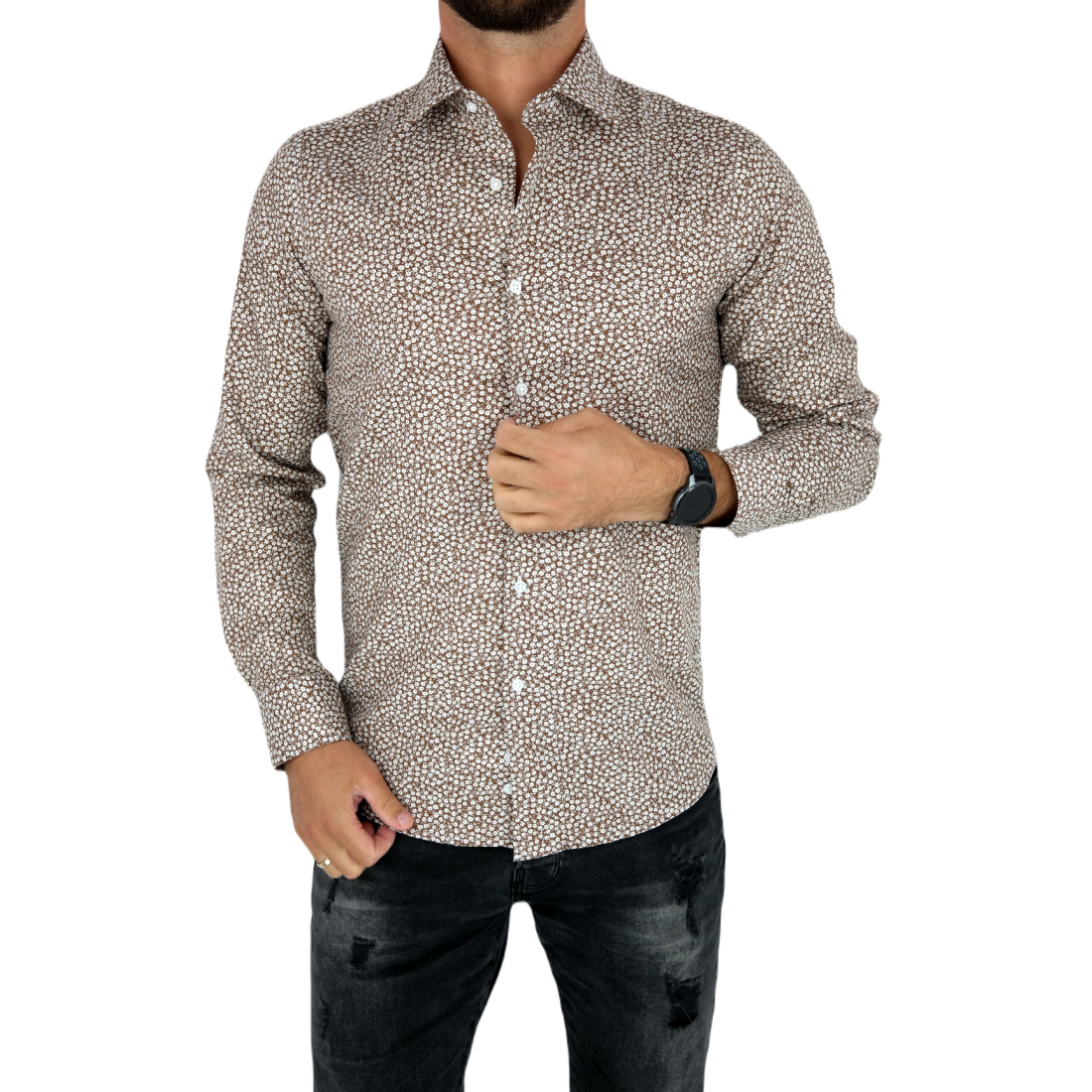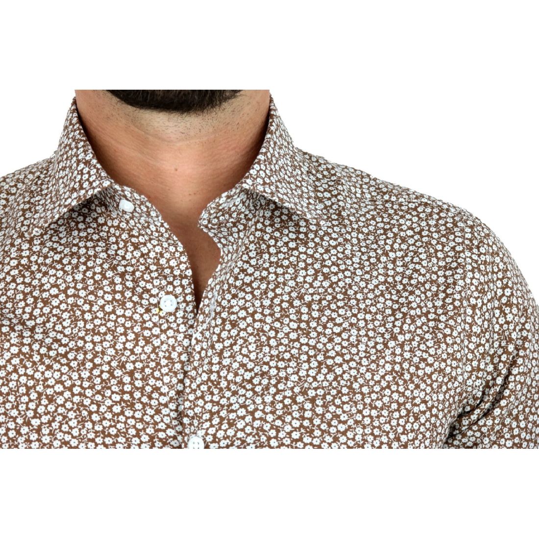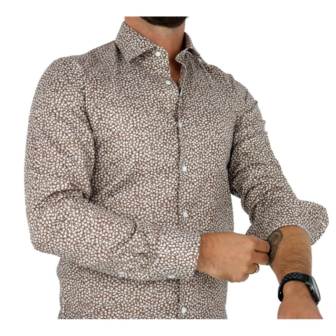 TANCREDO Koszula męska TN27 brązowa w drobne białe kwiatki
