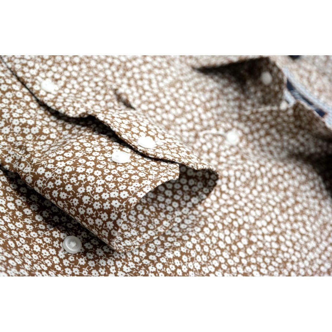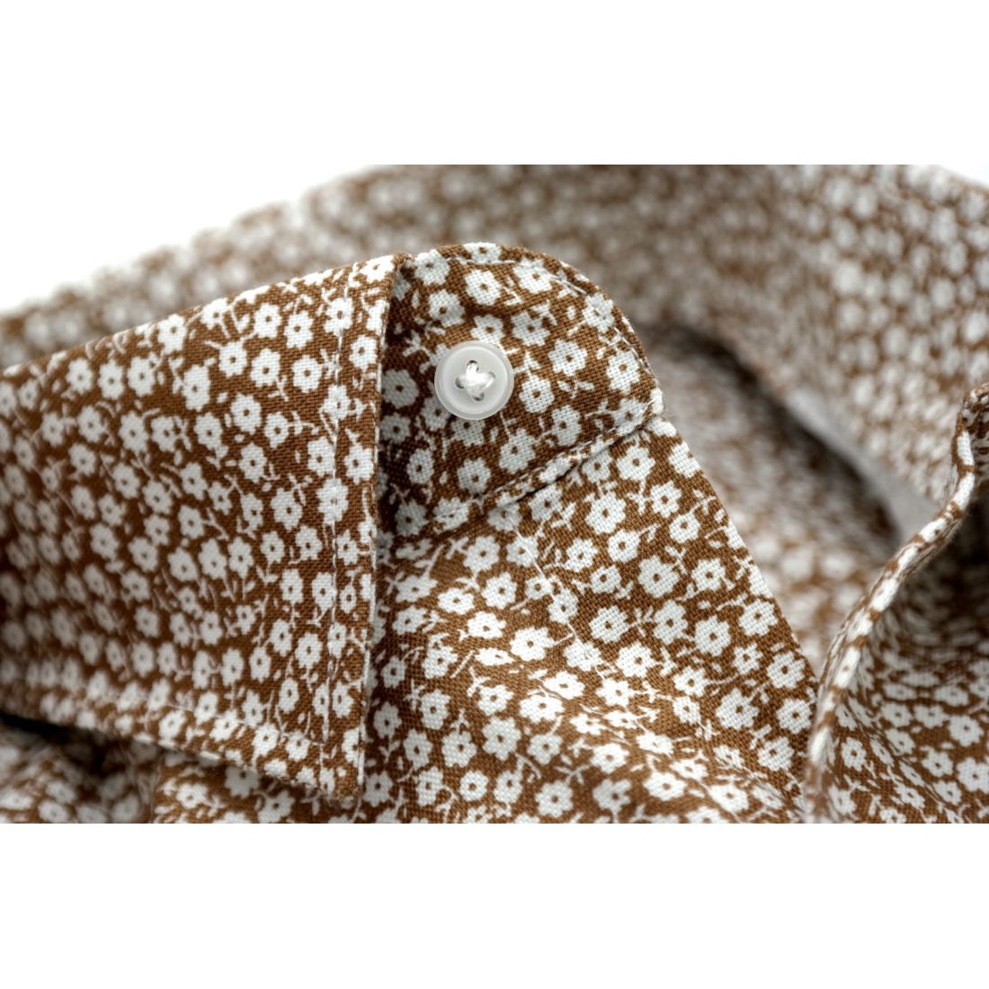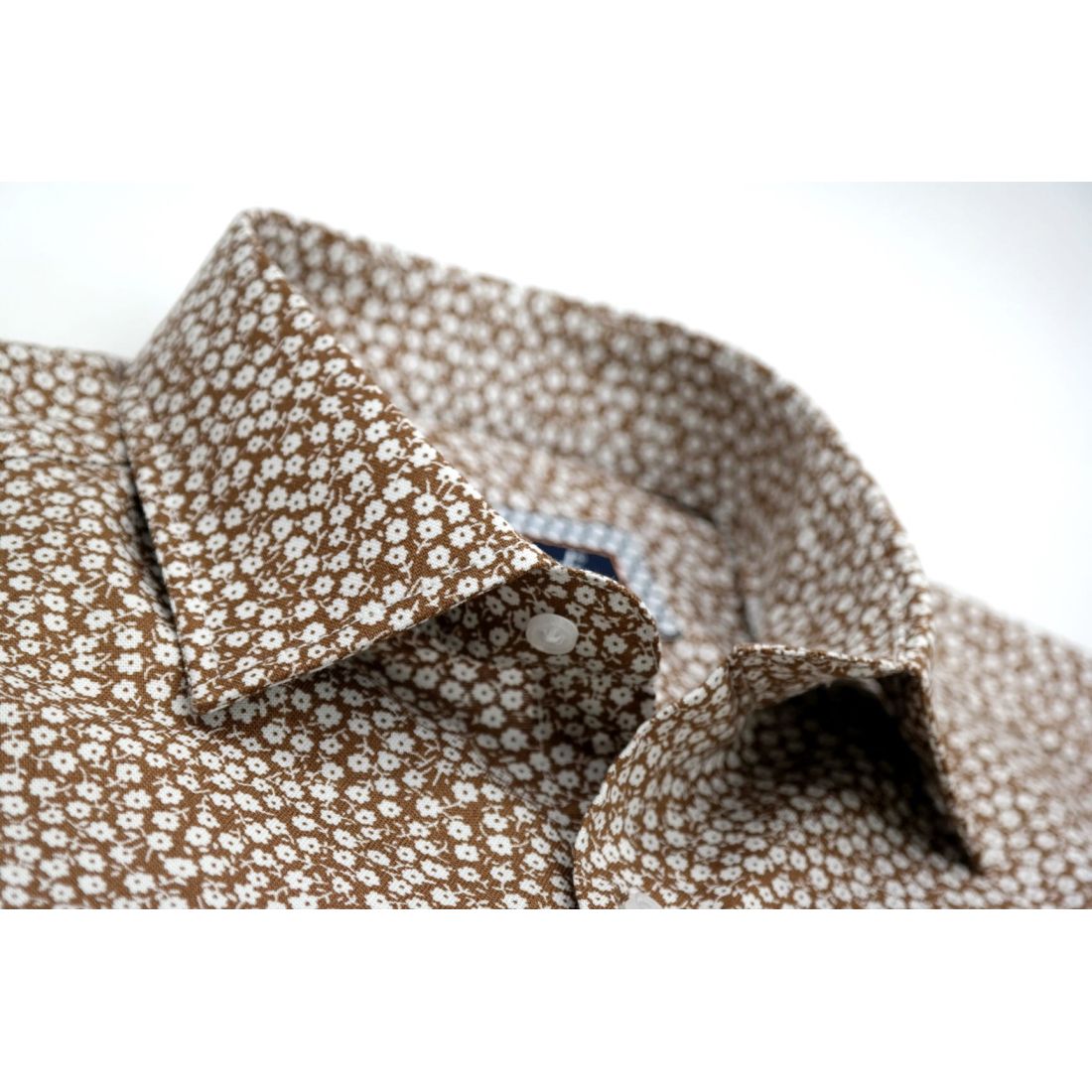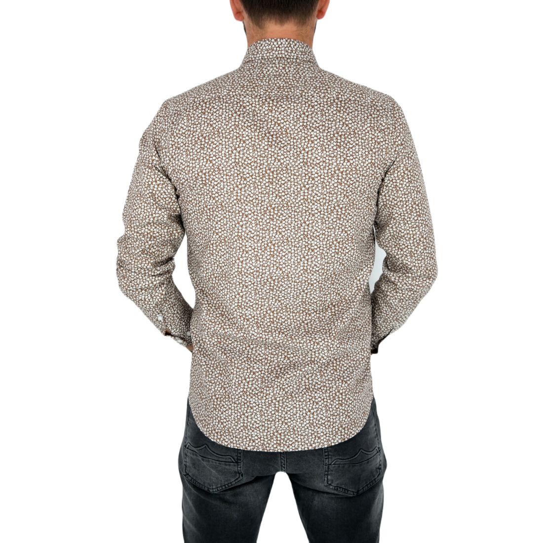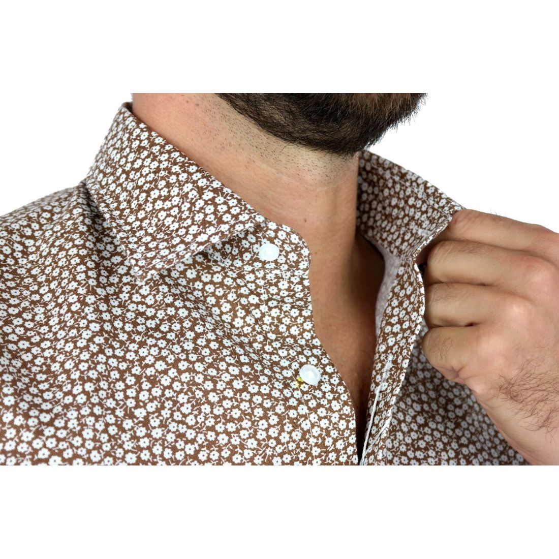 TANCREDO Koszula męska TN27 brązowa w drobne białe kwiatki