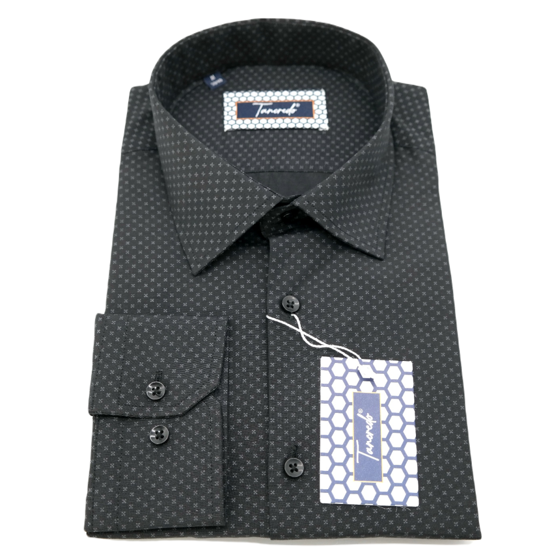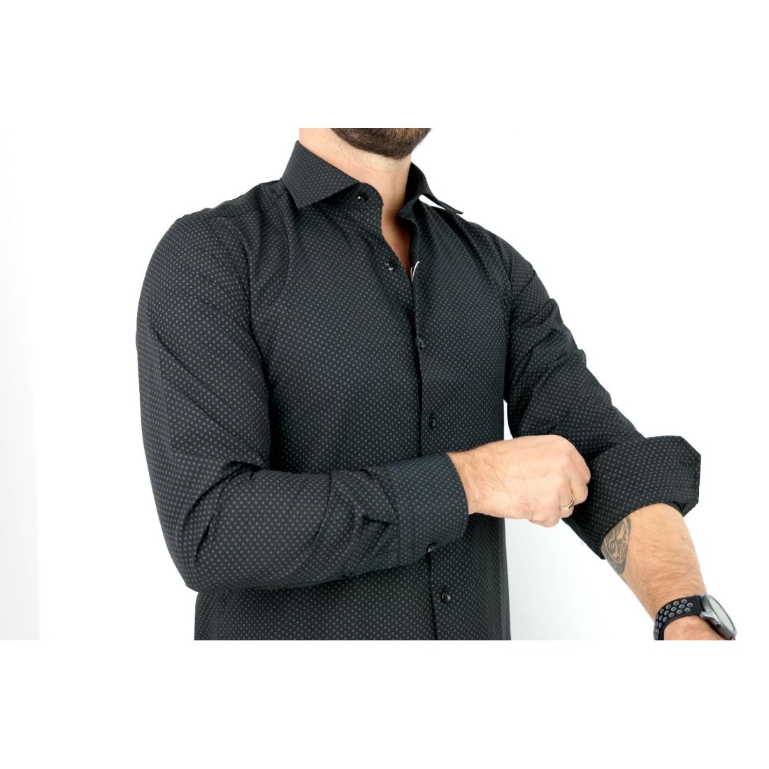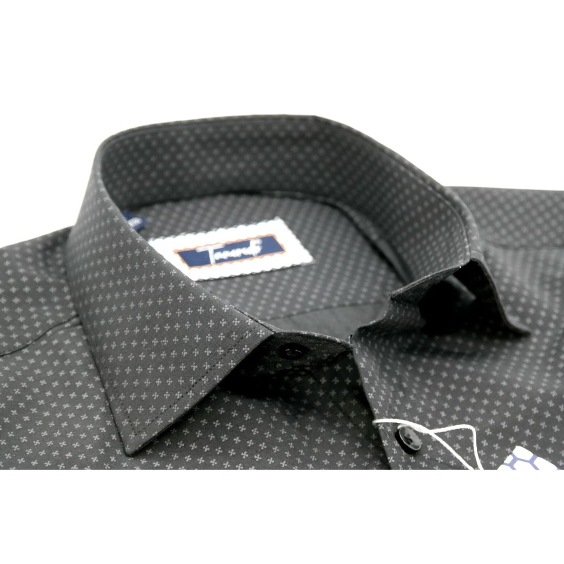 TANCREDO Koszula męska TN29 czarna, drobny szary wzór