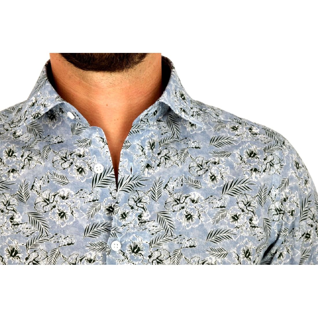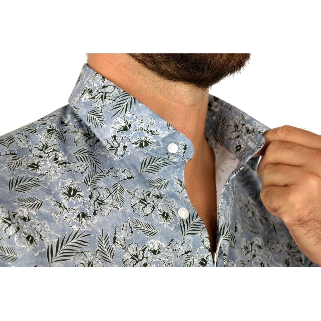 DANIEL BESSI Koszula męska fb605 ekskluzywna panterka kwiaty kolorowa