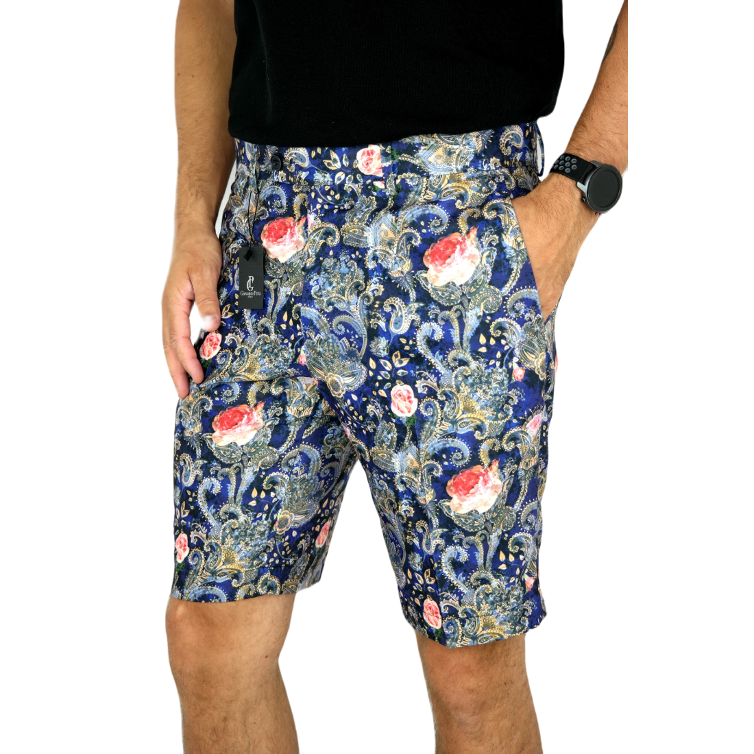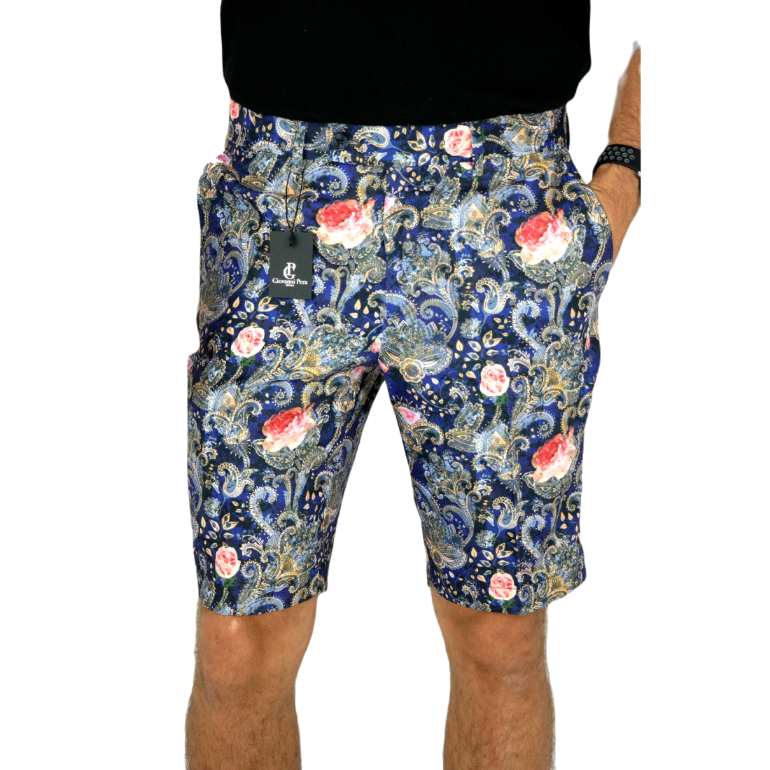 GIOVANNI PERA bezrękawnik, kamizelka męska ekskluzywna casual granat róże K606