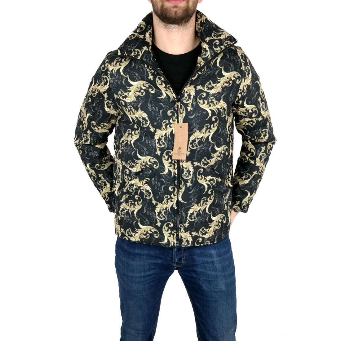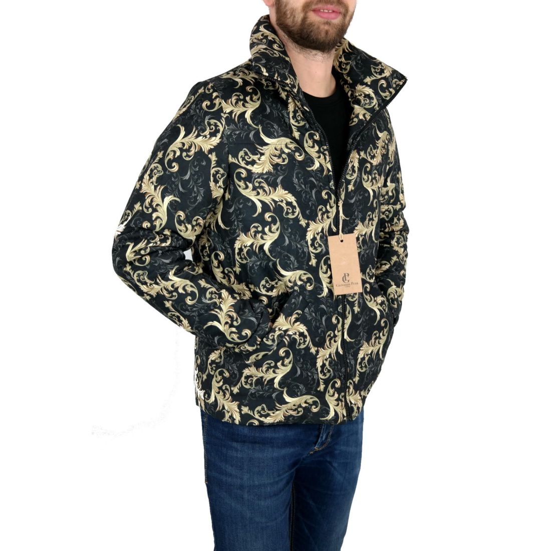 GIOVANNI PERA Kurtka męska czarno-złota glamour