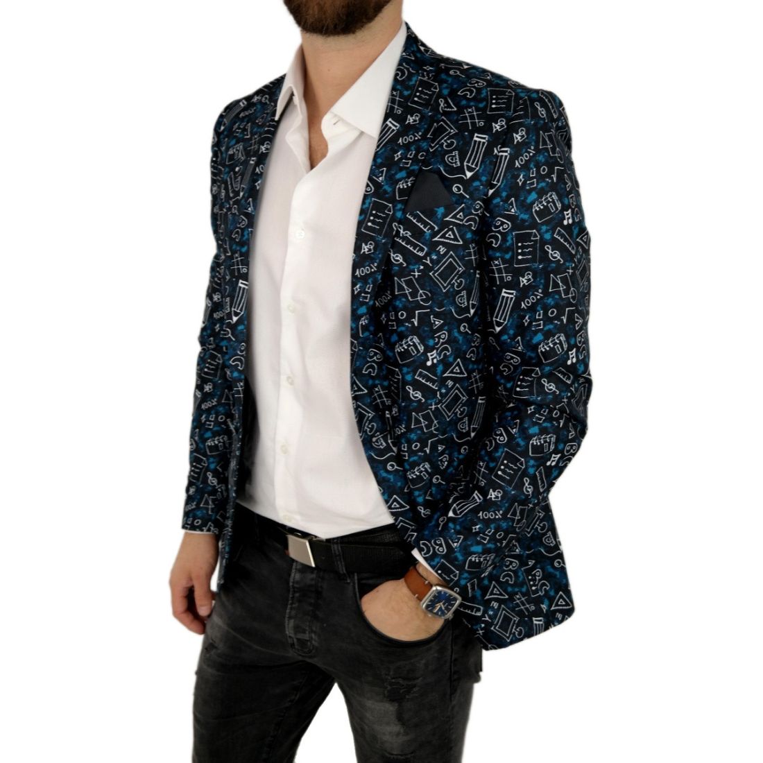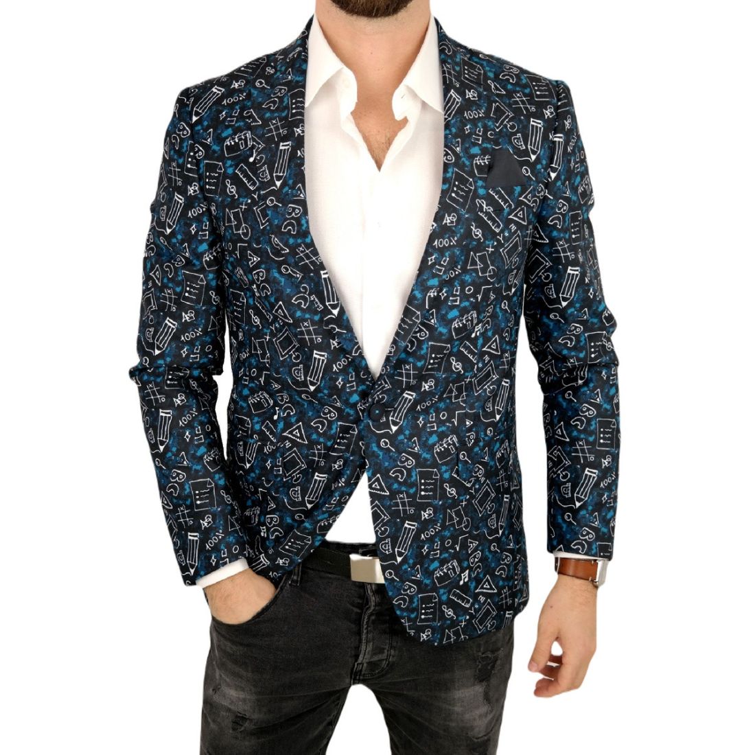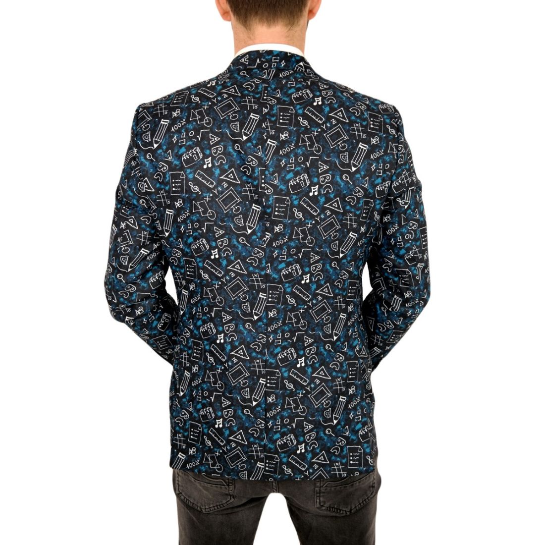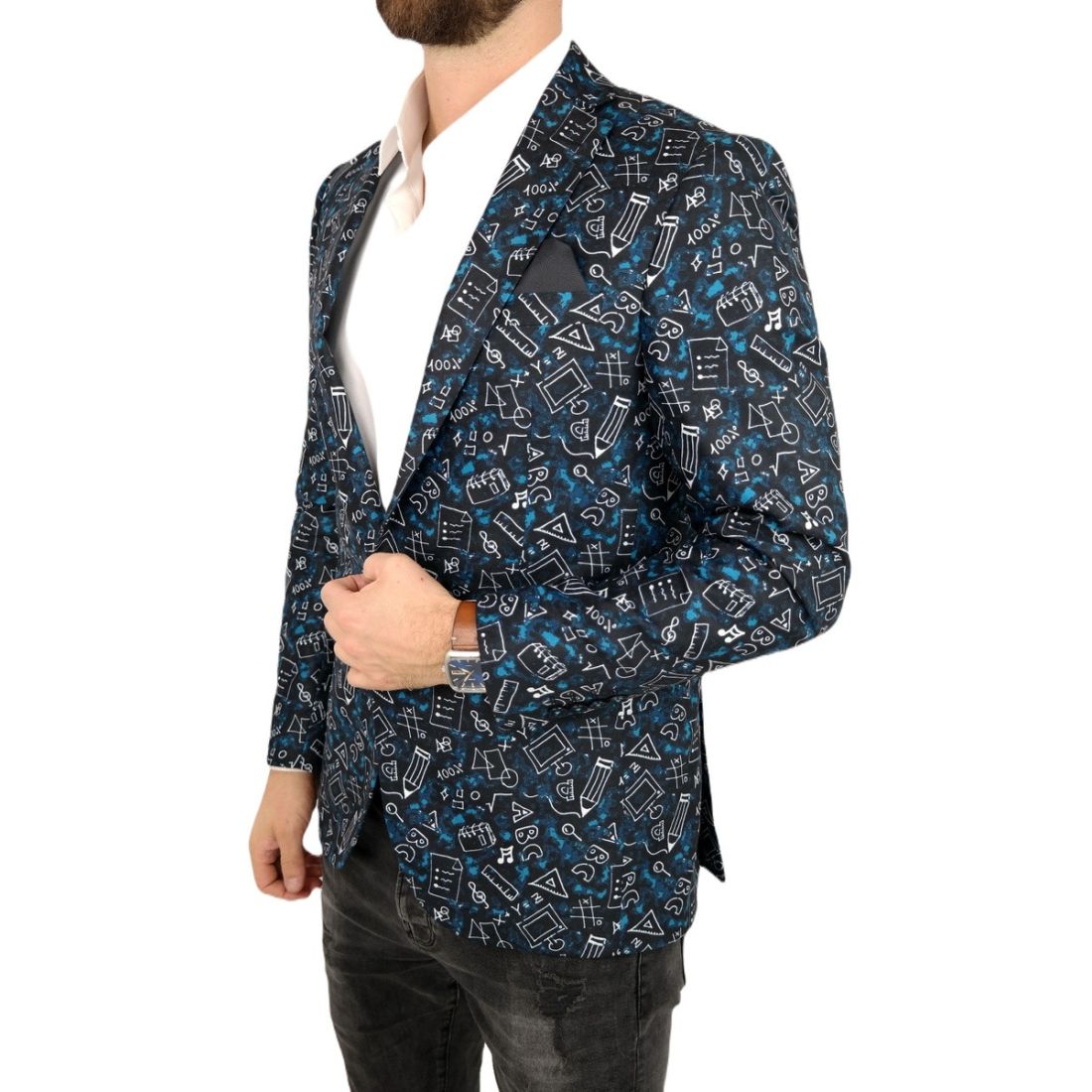 GIOVANNI PERA Marynarka męska kwiaty czarna, niebieskie róże ekskluzywna smokingowa, na...