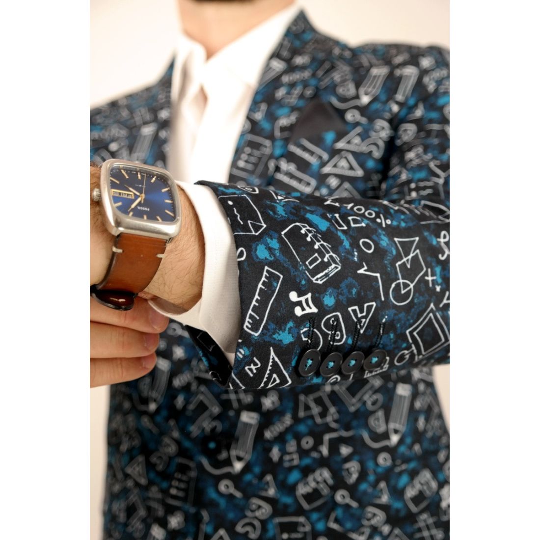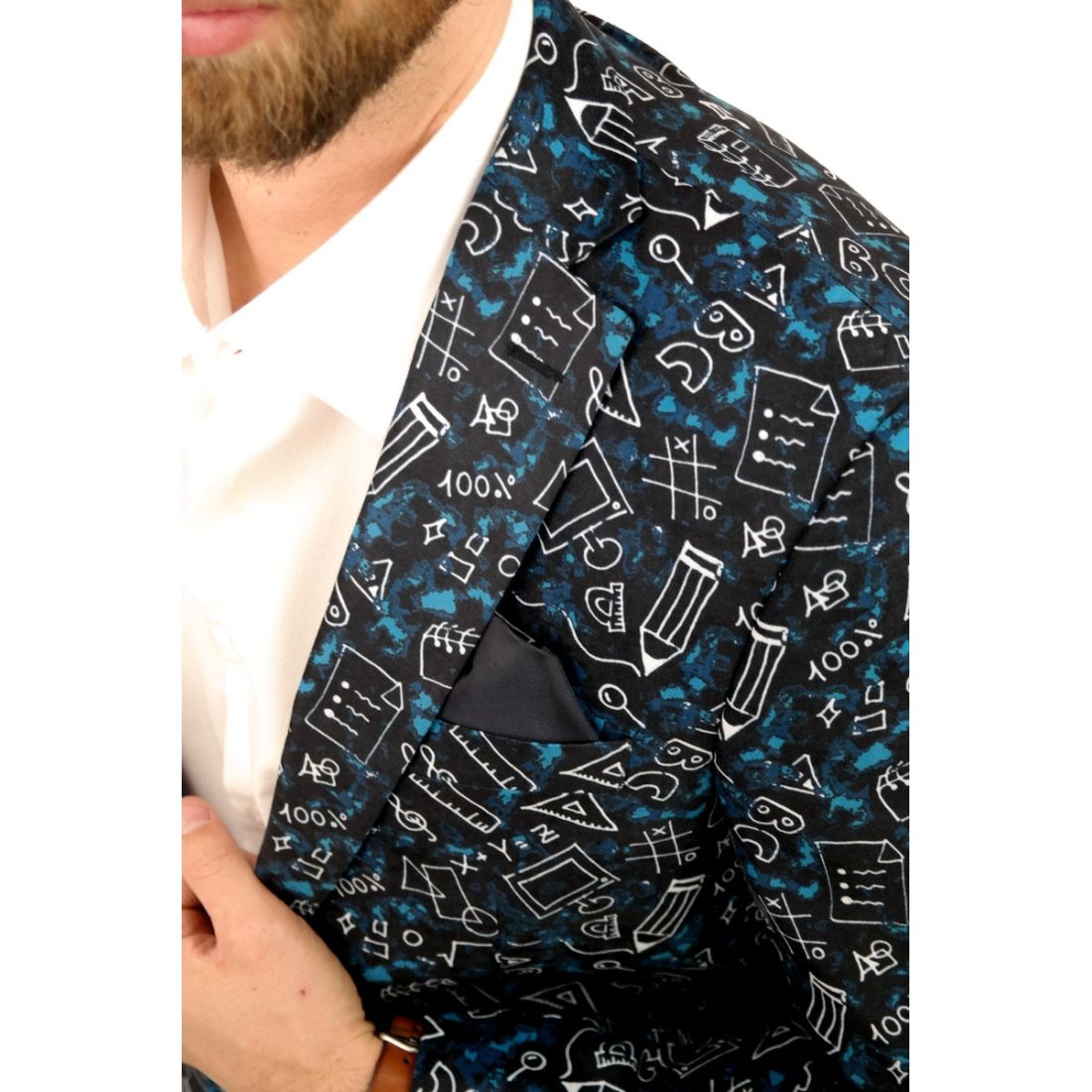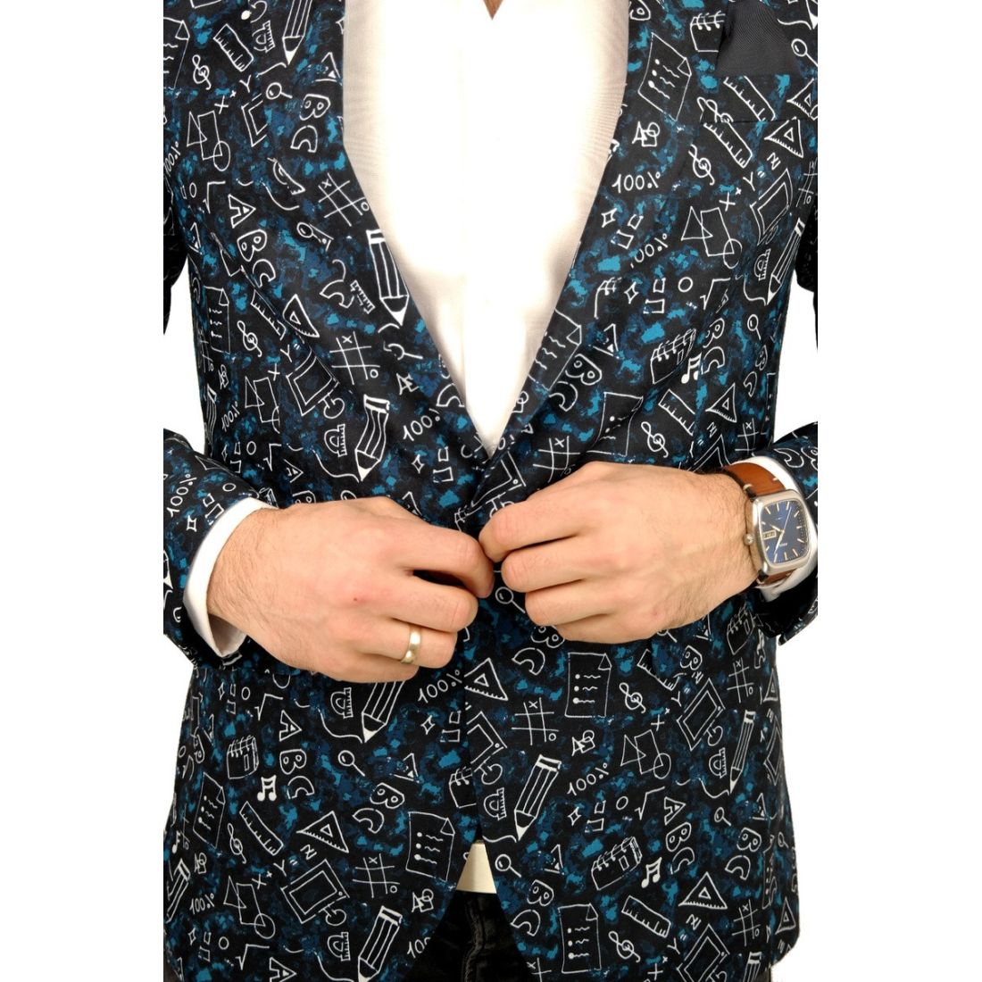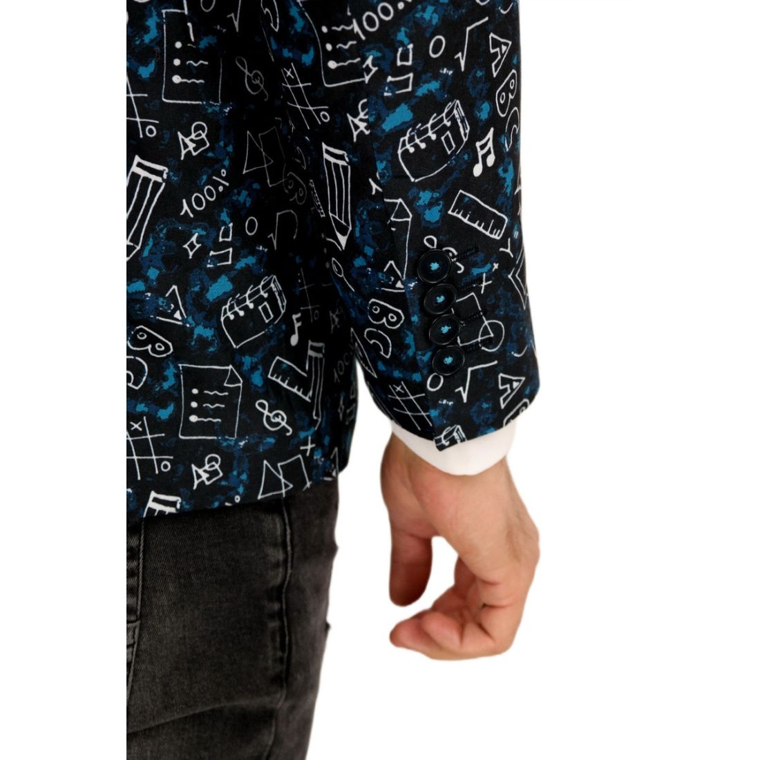 GIOVANNI PERA Marynarka męska kwiaty czarna, niebieskie róże ekskluzywna smokingowa, na...