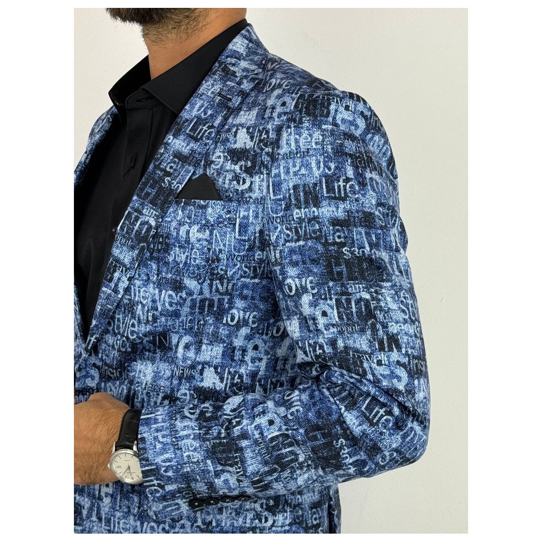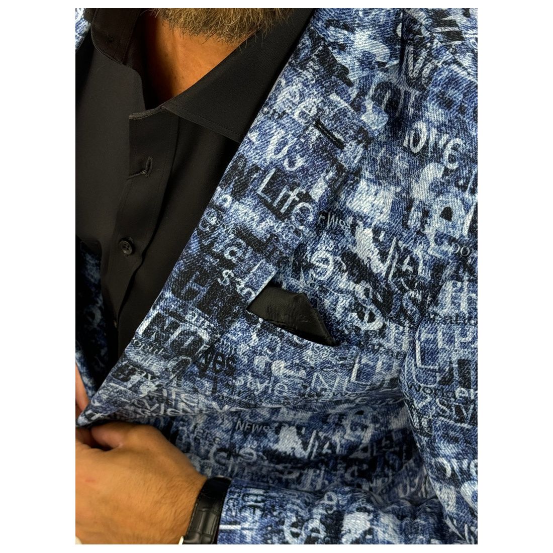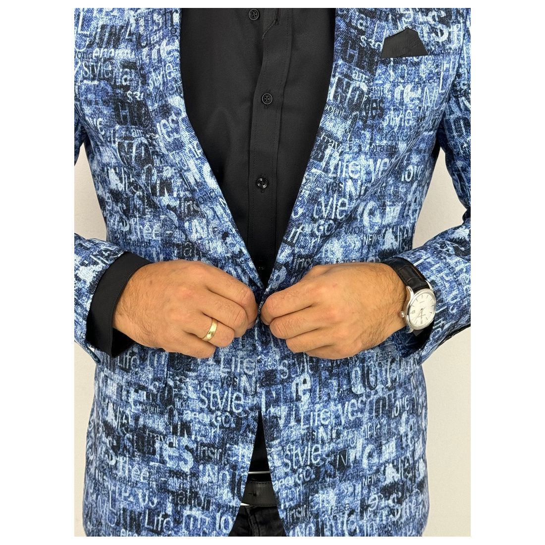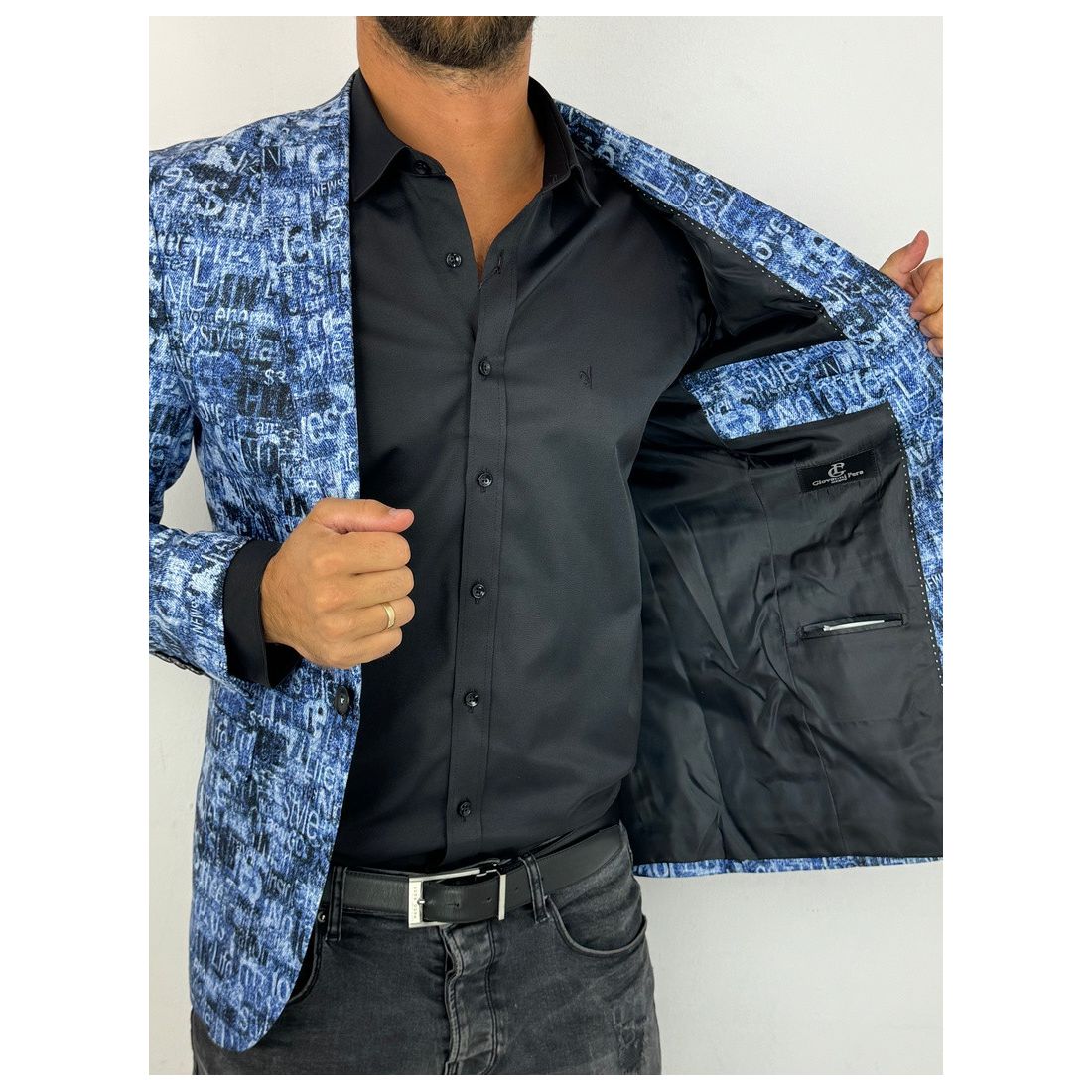 GIOVANNI PERA Marynarka męska kolorowa D502 wesoła, tatuaże muzyczna FUNKY