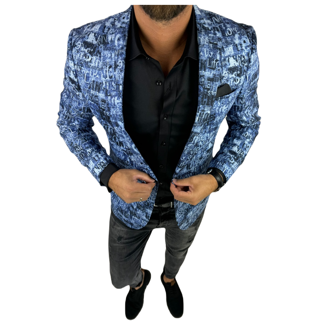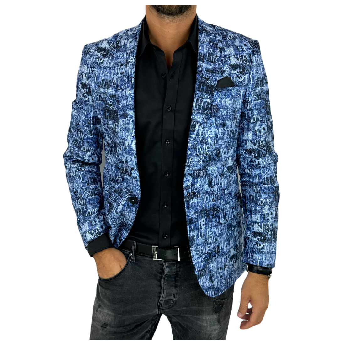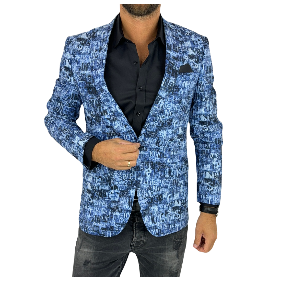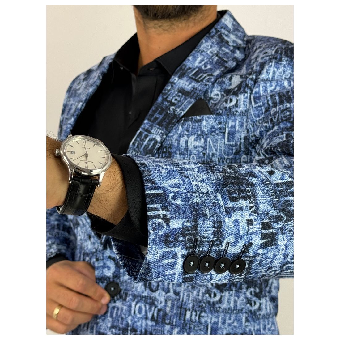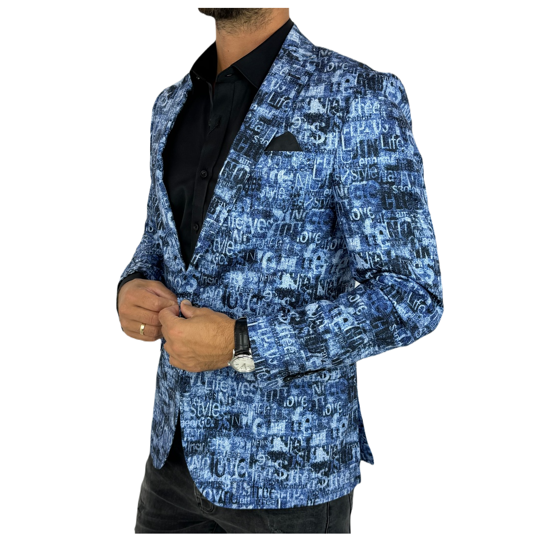 GIOVANNI PERA Marynarka męska kolorowa D502 wesoła, tatuaże muzyczna FUNKY