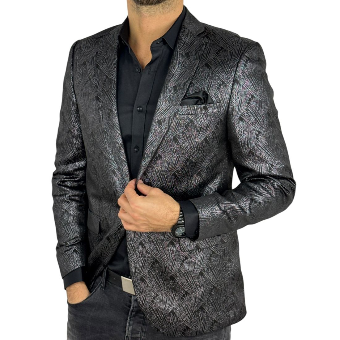 GIOVANNI PERA Marynarka MB04 czarna, ekskluzywna, sceniczna, ozdobne klapy - złote
