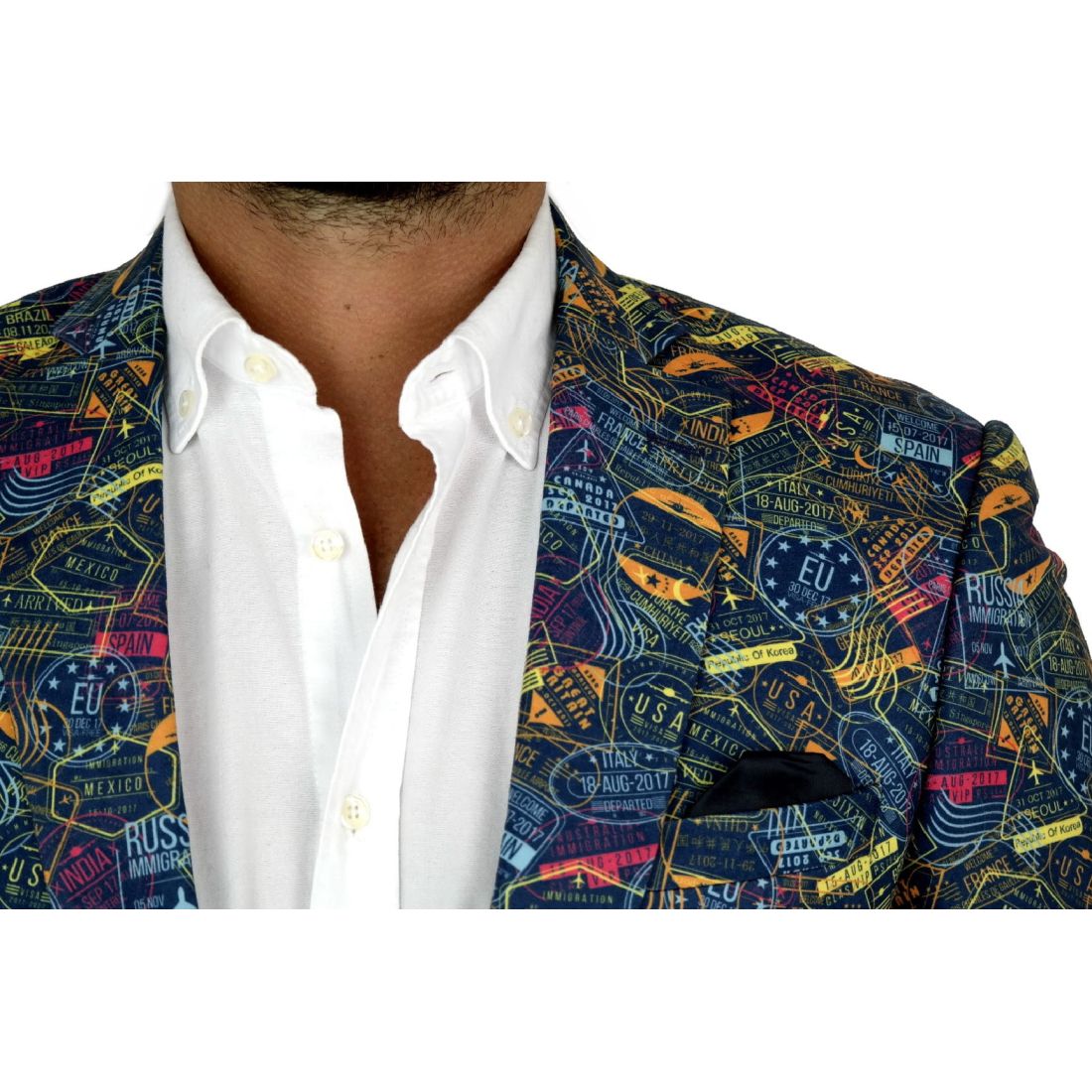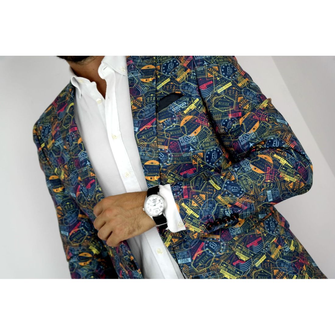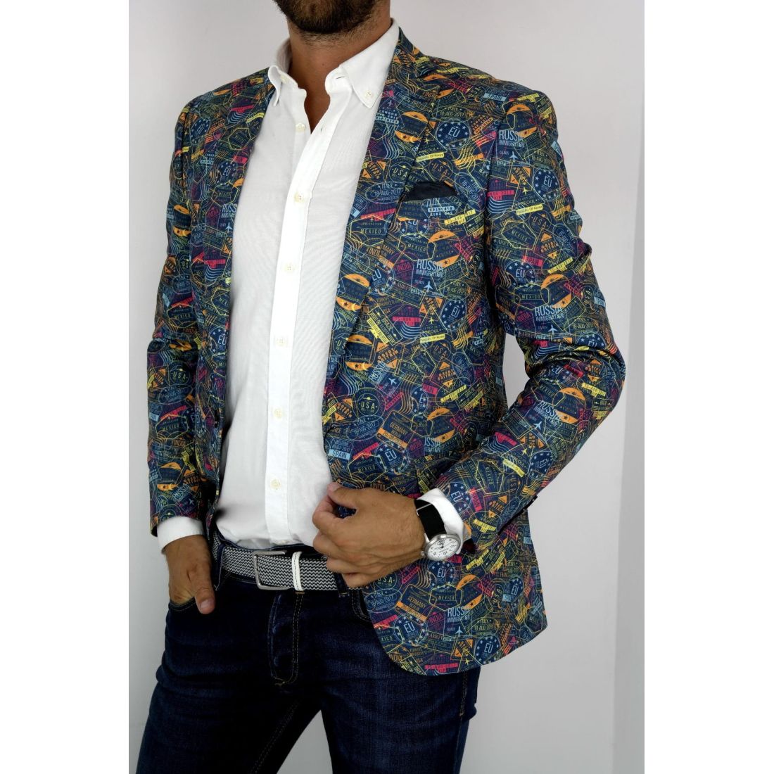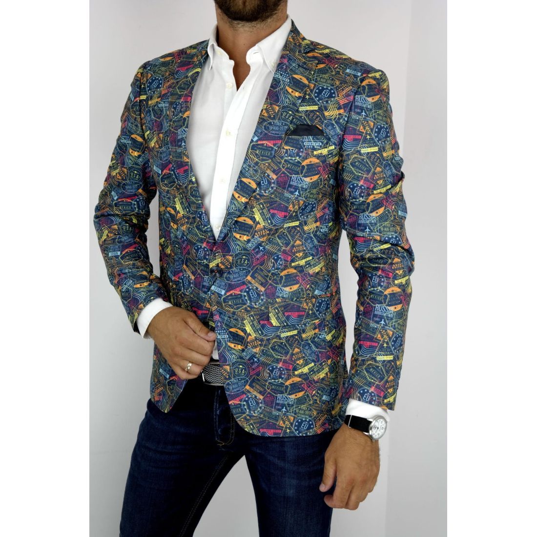 MARCO MILANO Marynarka męska C22 niebieska, paisley, drobny wzór, casual, kwiaty