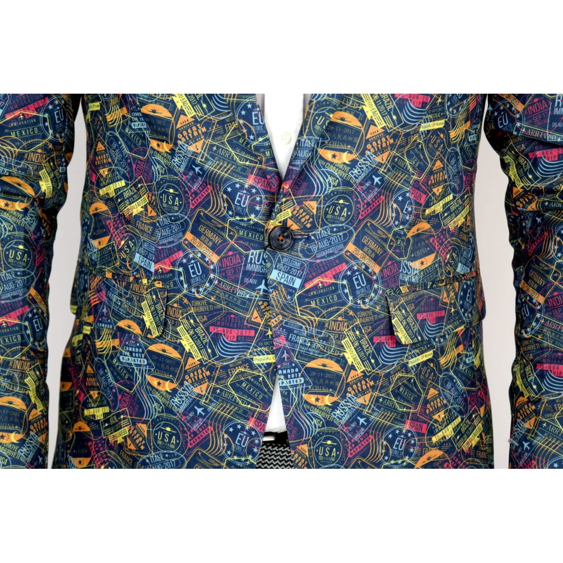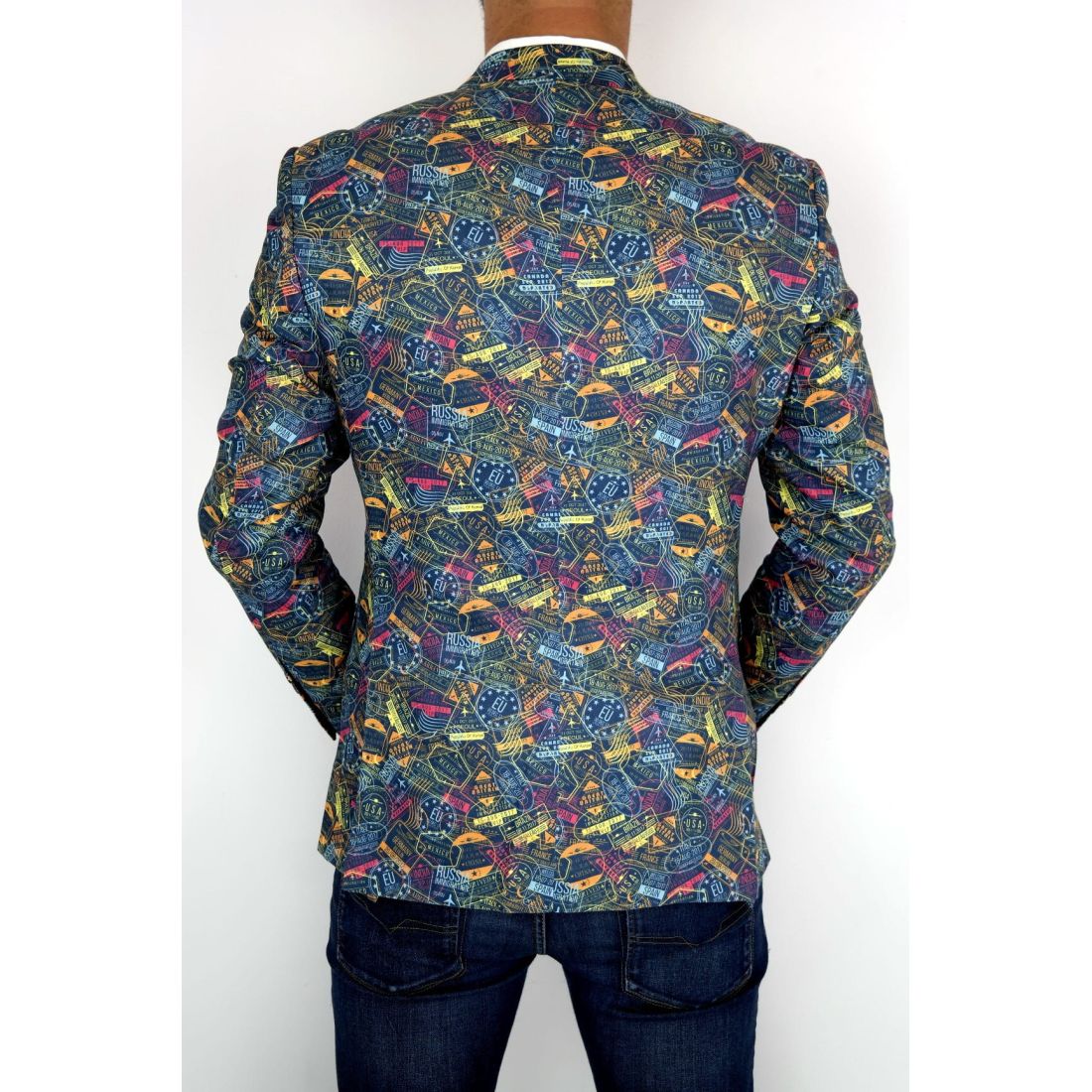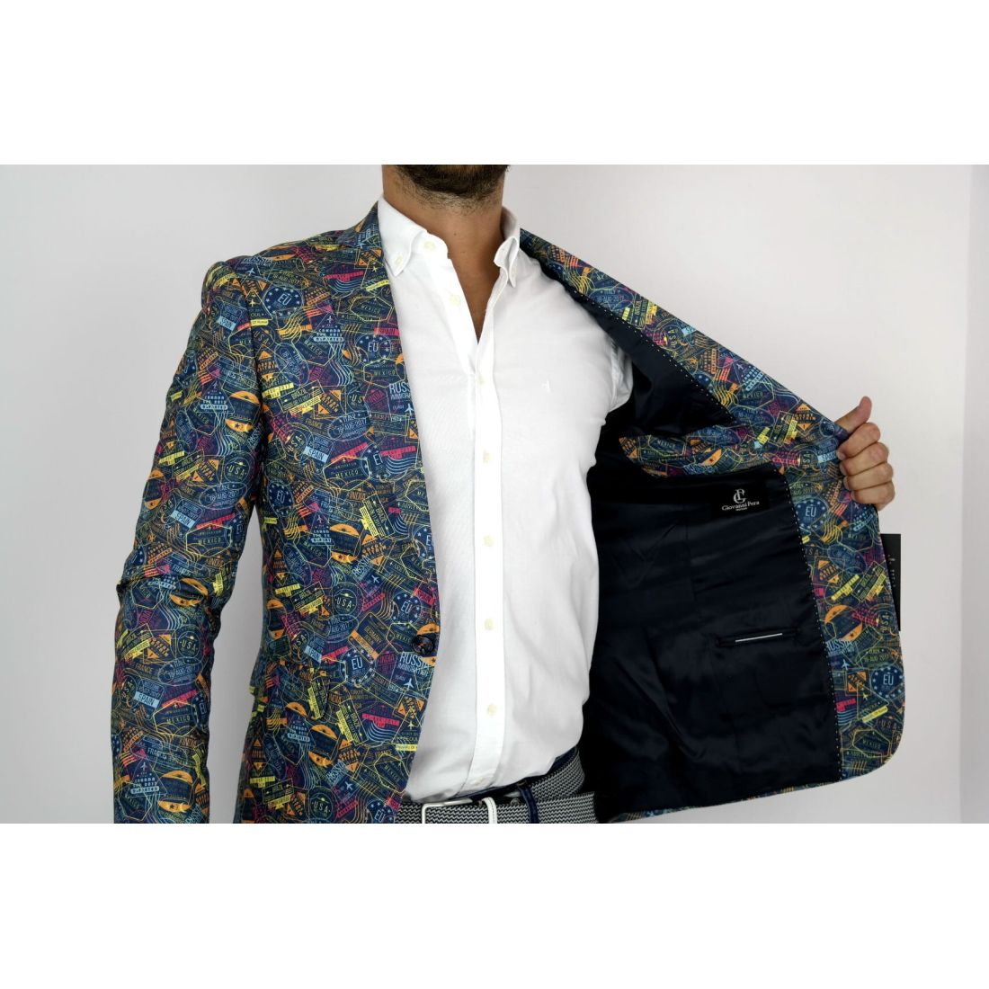 MARCO MILANO Marynarka męska C22 niebieska, paisley, drobny wzór, casual, kwiaty