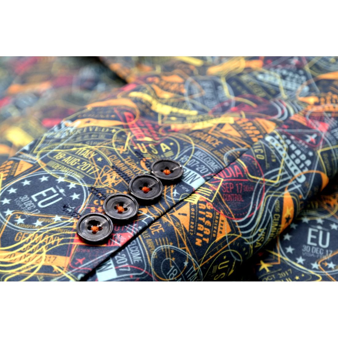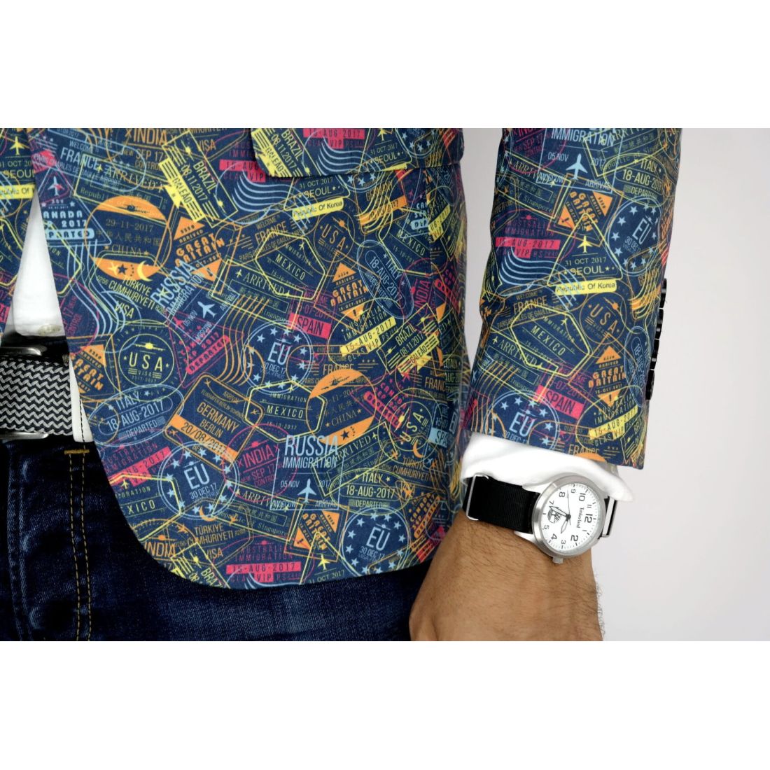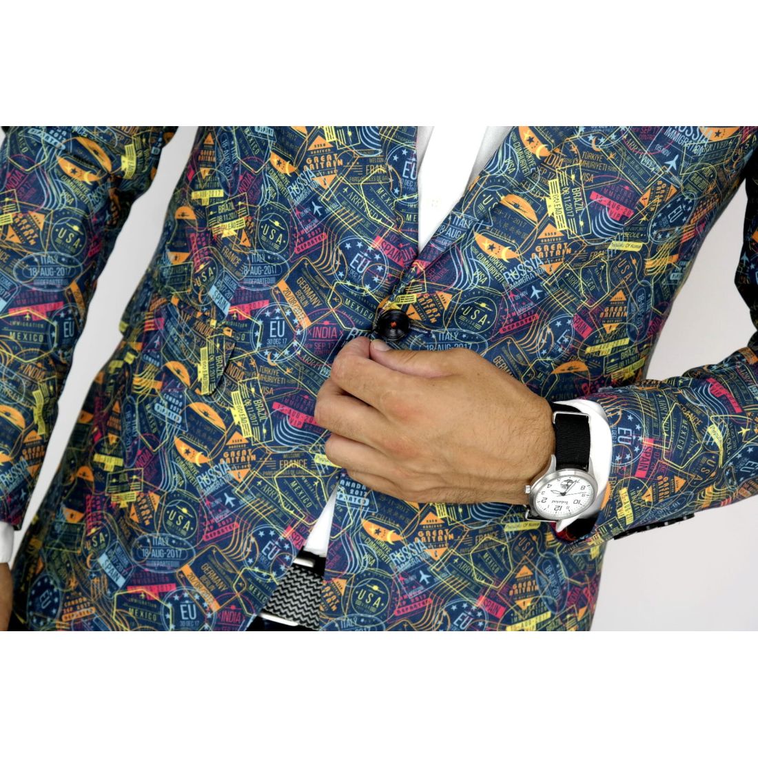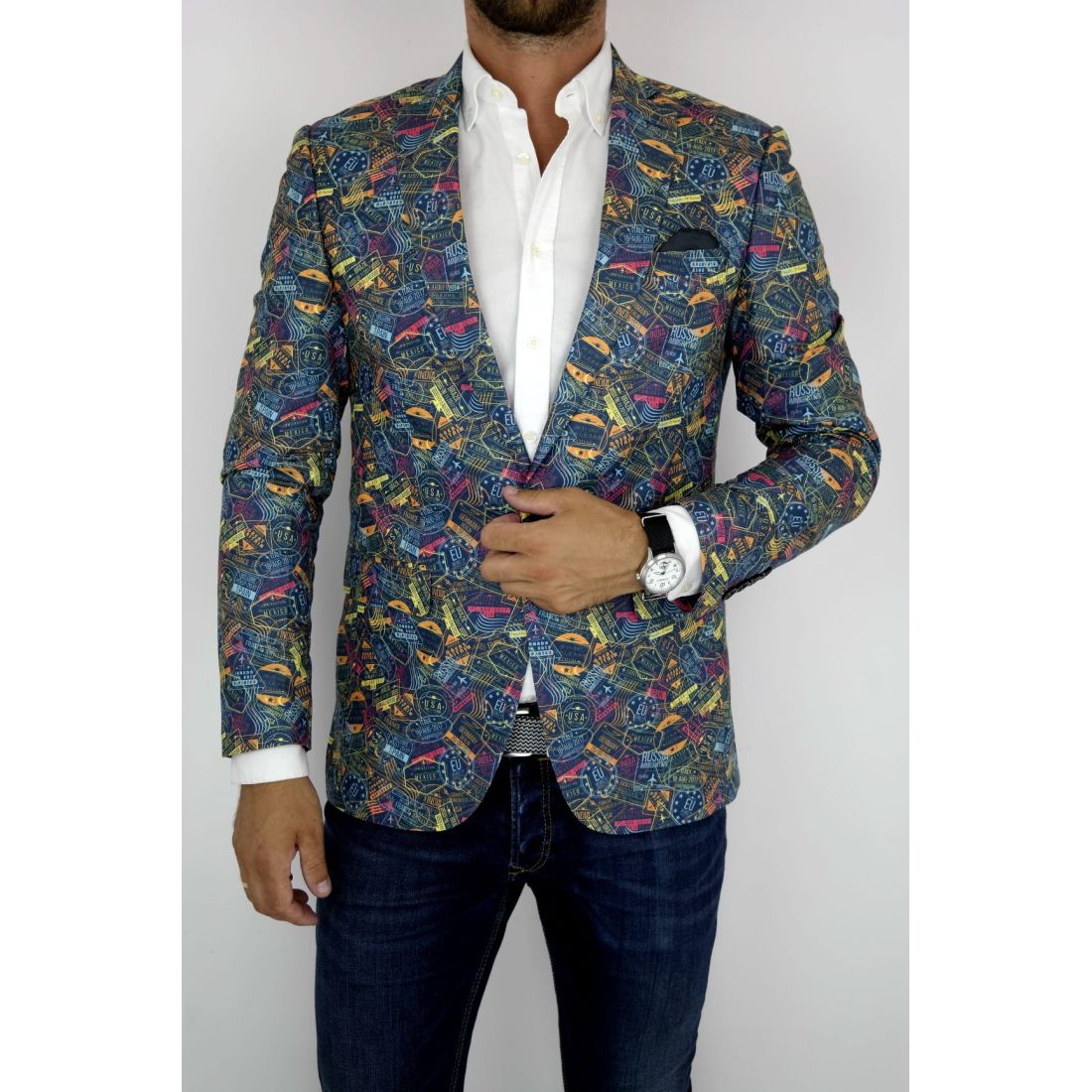 MARCO MILANO Marynarka męska C22 niebieska, paisley, drobny wzór, casual, kwiaty