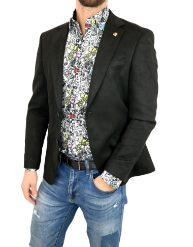 MARCO MILANO Marynarka męska C19 czarna, gładka, elegancka, casual, sportowa