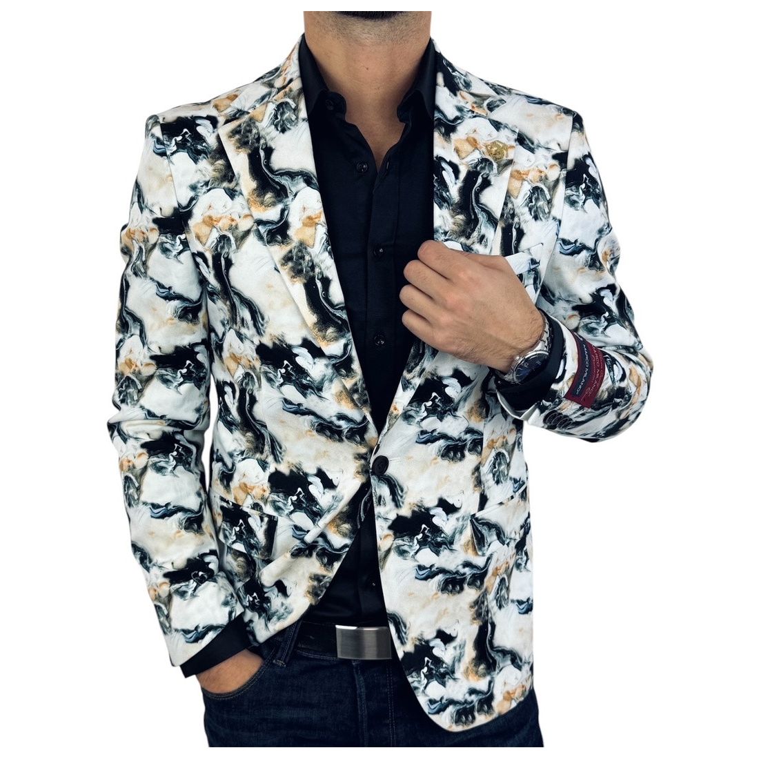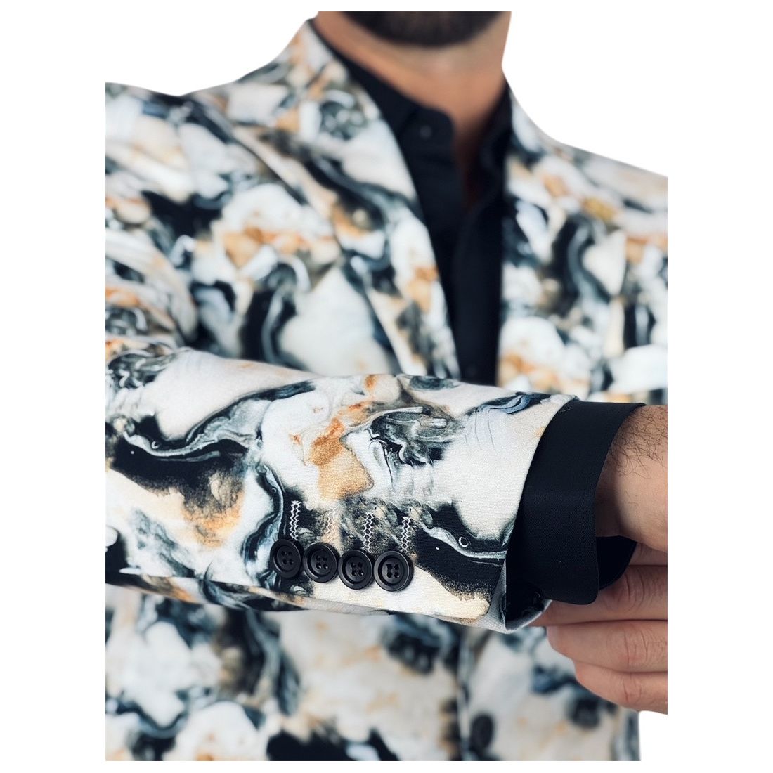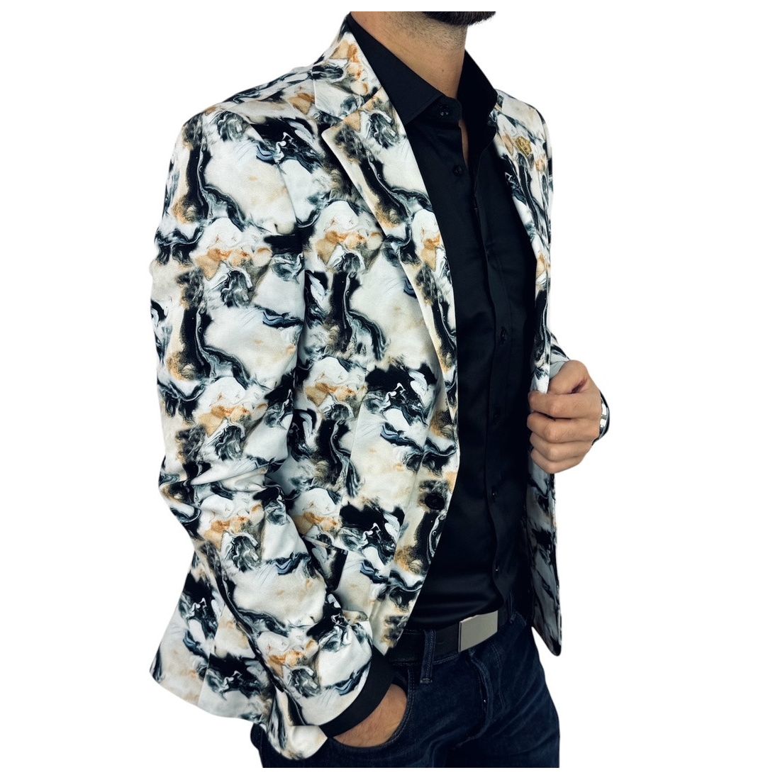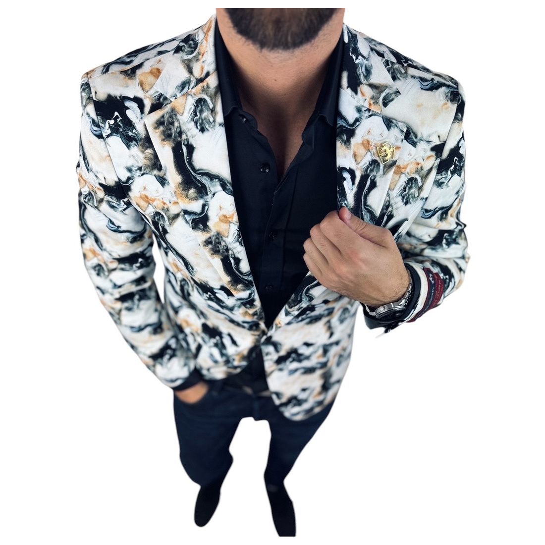 MARCO MILANO Marynarka męska C26 biała, marmurowy dym, elegancka, casual