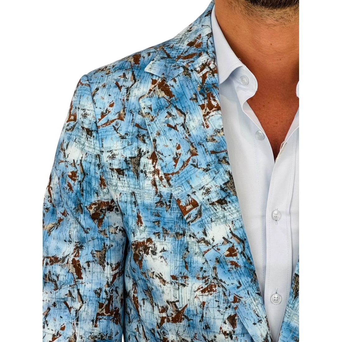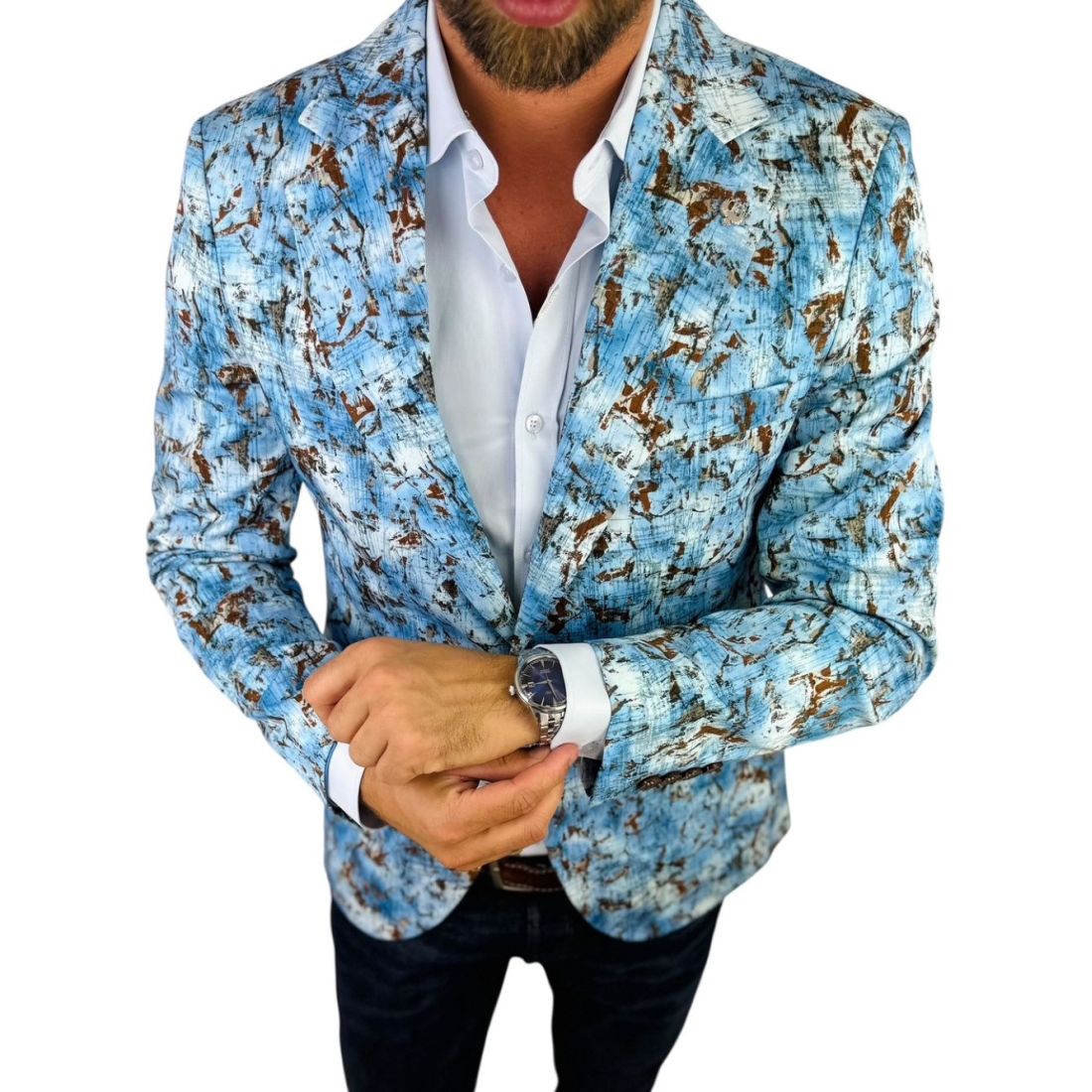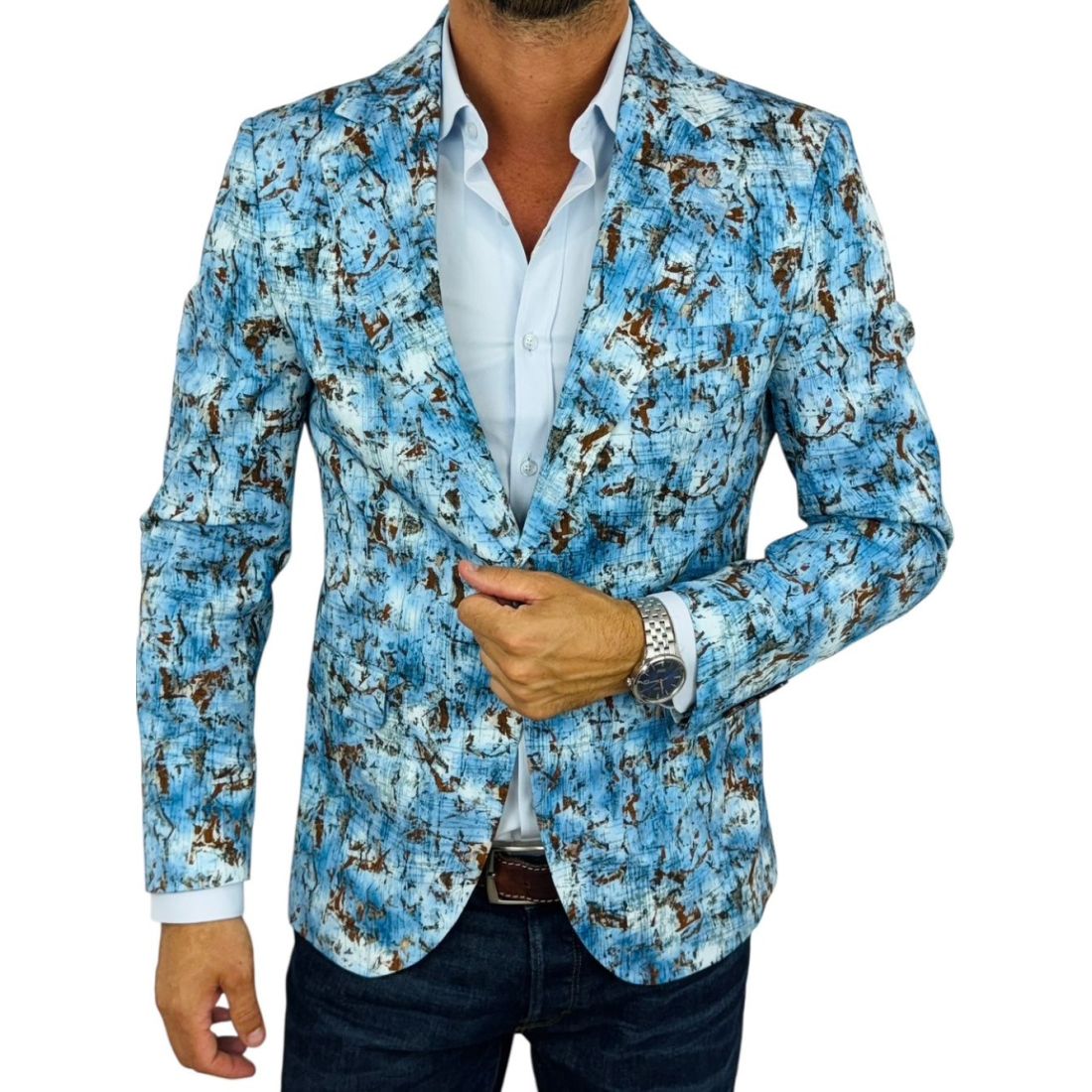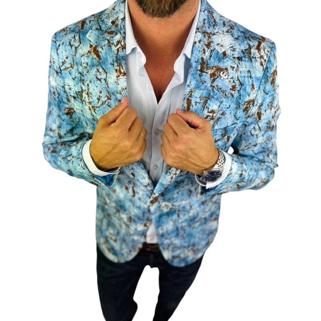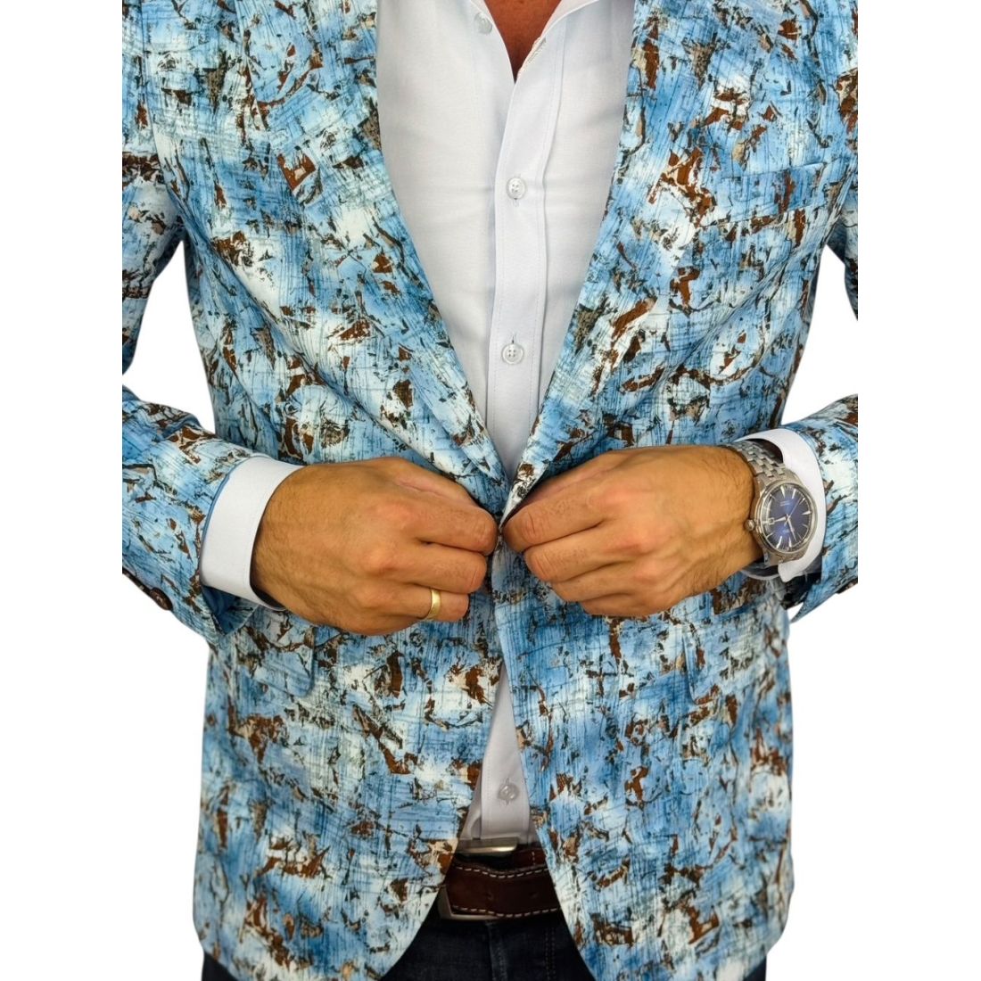 MARCO MILANO Marynarka męska C33 niebieska, brązowy wzór, casual
