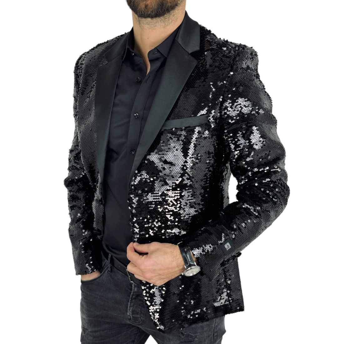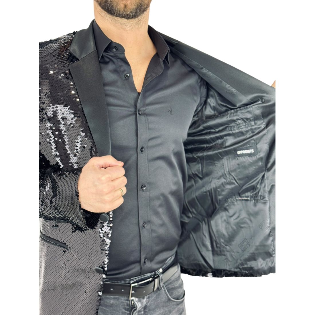 OPPOSUITS Marynarka męska elegancka cekinowa, estradowa, imprezowa OC21 czarna