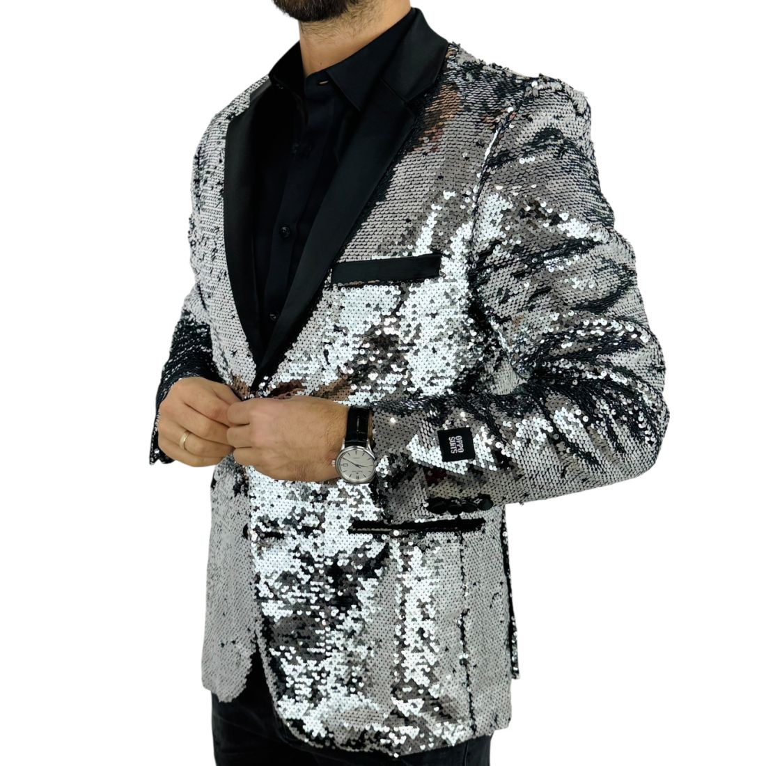 OPPOSUITS Marynarka męska elegancka cekinowa, estradowa, imprezowa OC25 srebrna