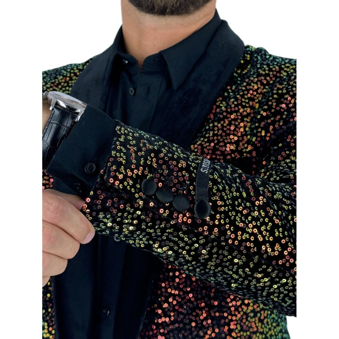 GIOVANNI PERA Marynarka męska D628 niebieska w napisy, efekt jeansu, kolorowa