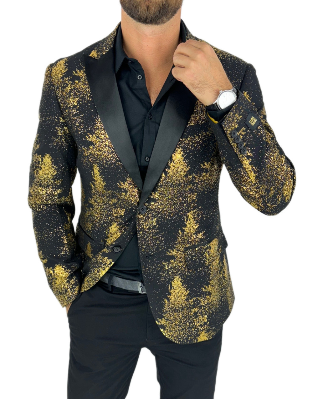 OPPOSUITS Marynarka męska elegancka czarna złota FESTIVE FOREST konfetti, imprezowa