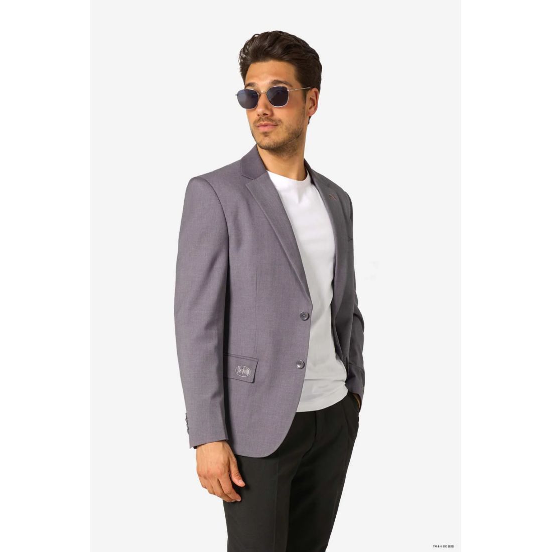 OPPOSUITS Marynarka męska szara, batman, marvel, kolorowa podszewka