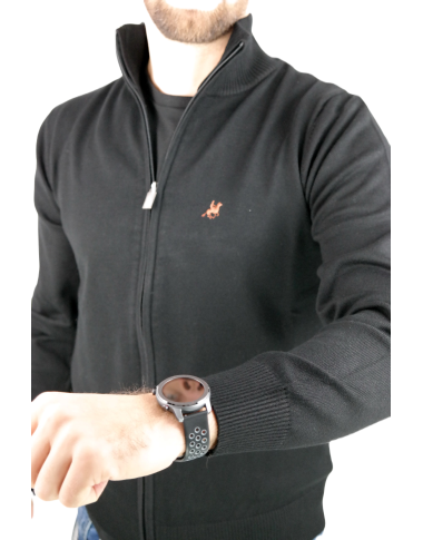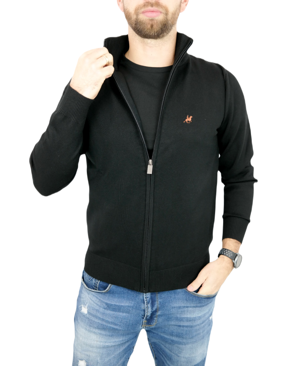 - U.S. GRAND POLO Sweter męski G12 czarny, rozpinany, gładki