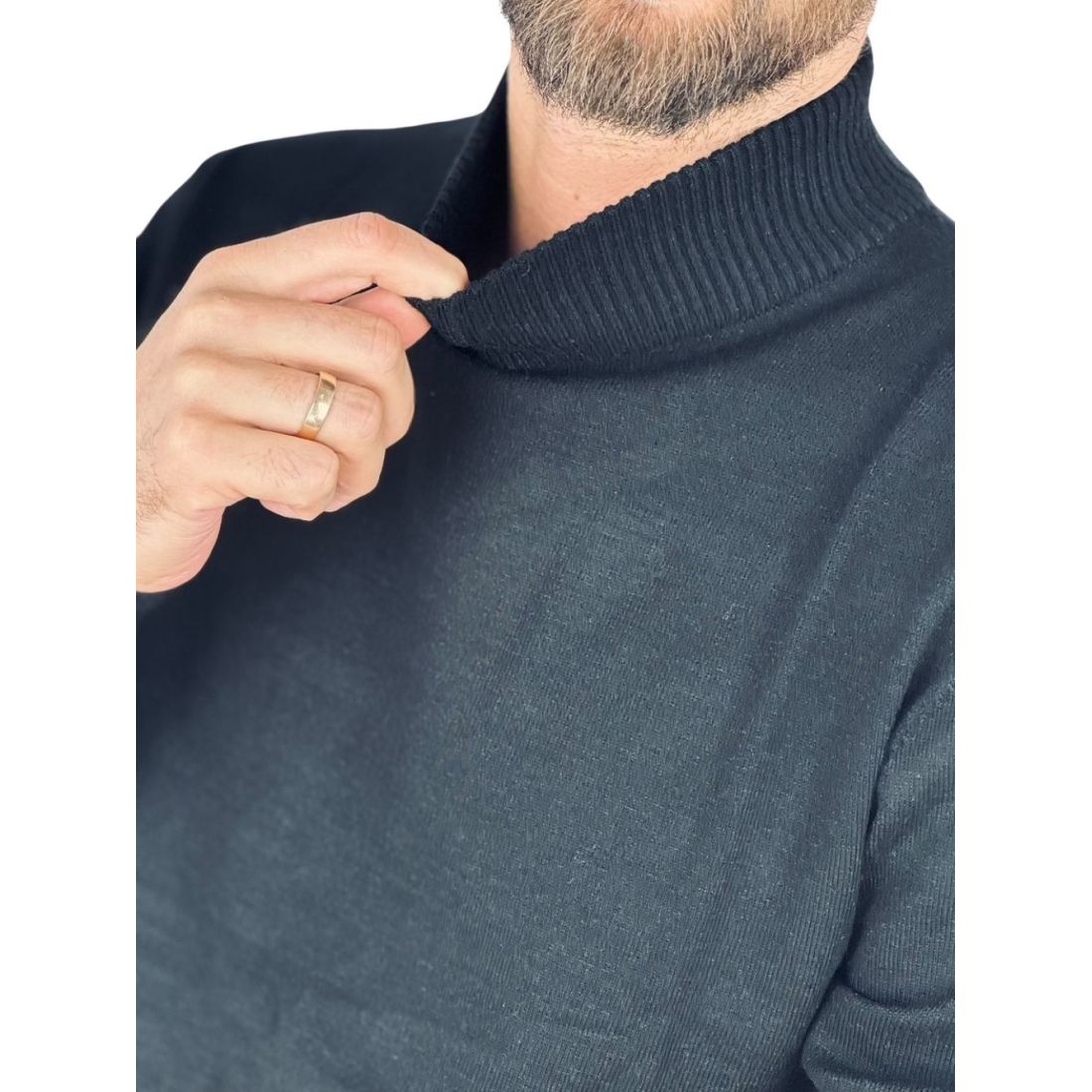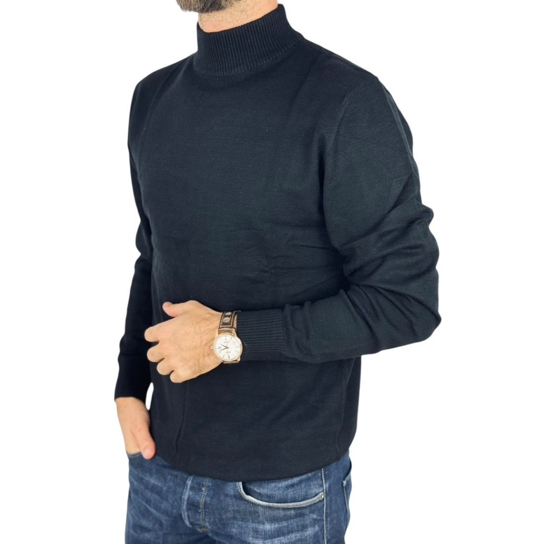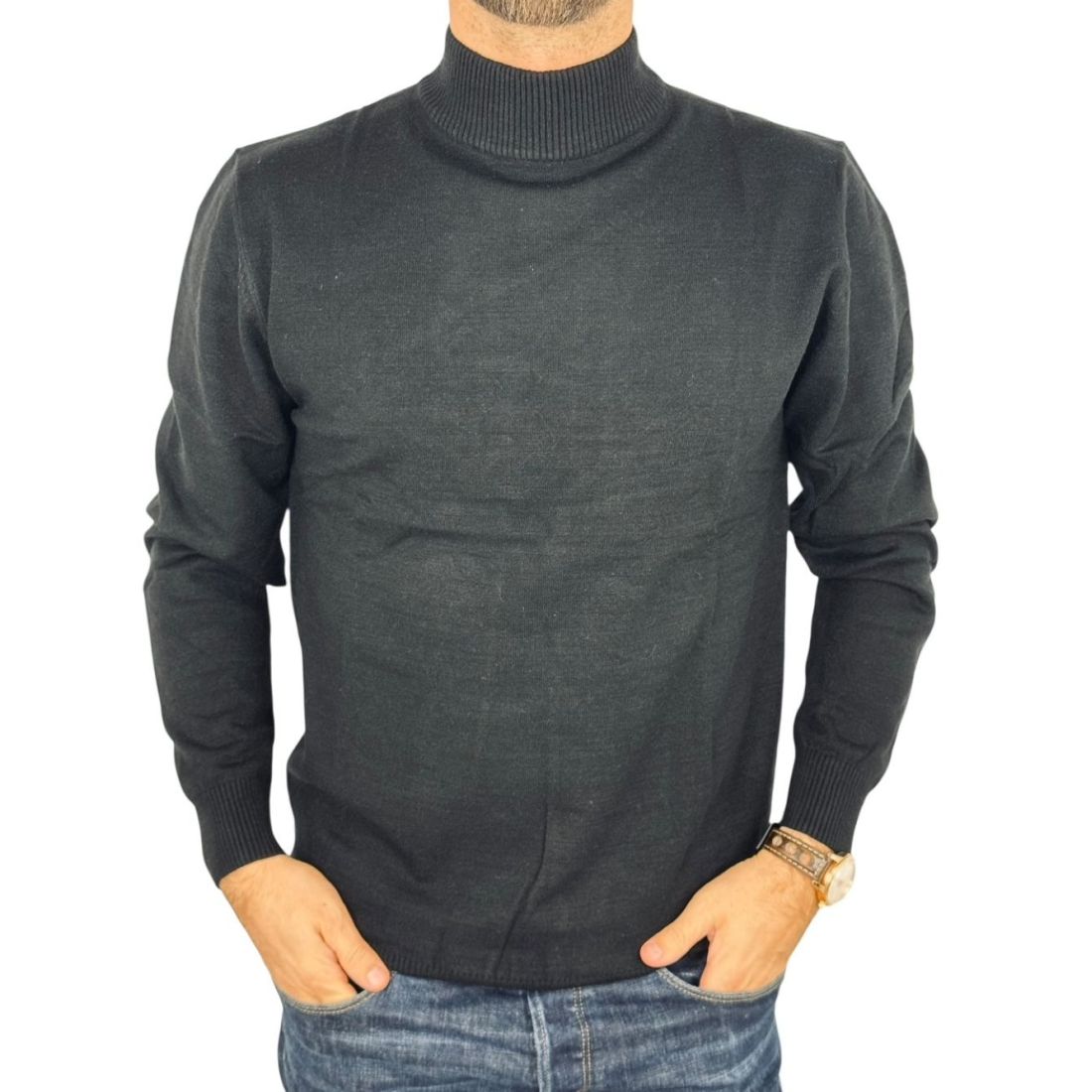 YVES ENZO Sweter męski półgolf GYE2 czarny, gładki